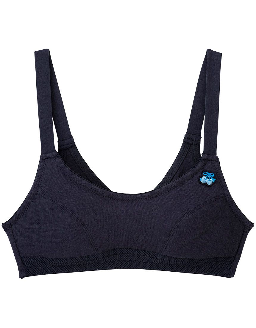 カップの肌側はつぎ目がなく、ふんわりここちよい肌ざわりで、敏感な成長期のバストにぴったり。よく伸びるストラップと下辺メッシュ素材で、からだの成長の変化に対応可能。