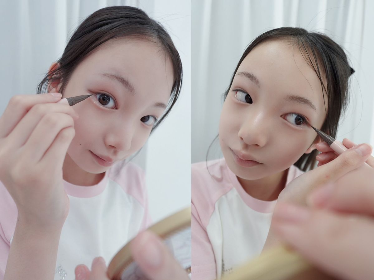 シャープですっきりしたいんしょうになるし、ぼかしたアイシャドウとの相性がよいから、わたしはいつもリキッドペンシルタイプにしているよ!
