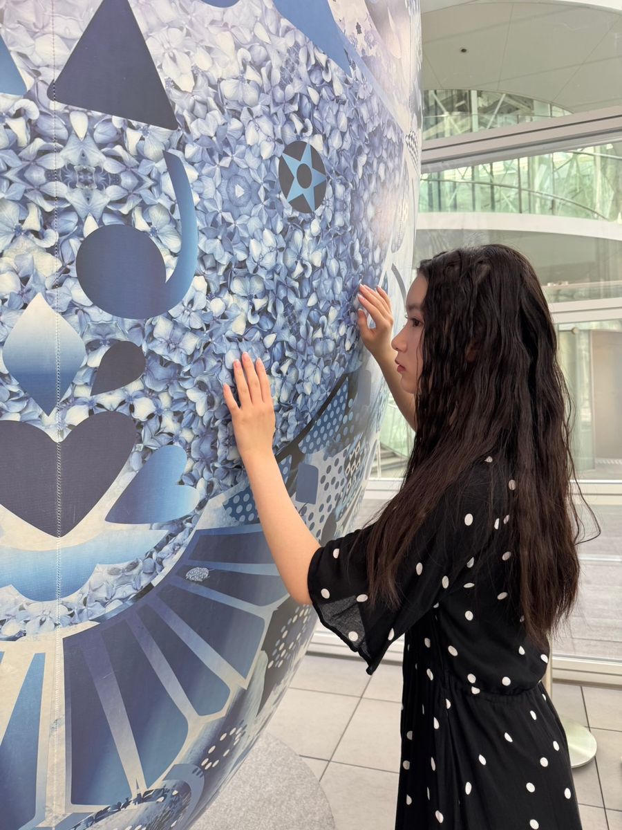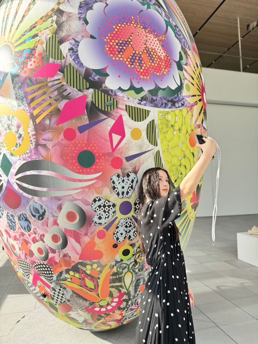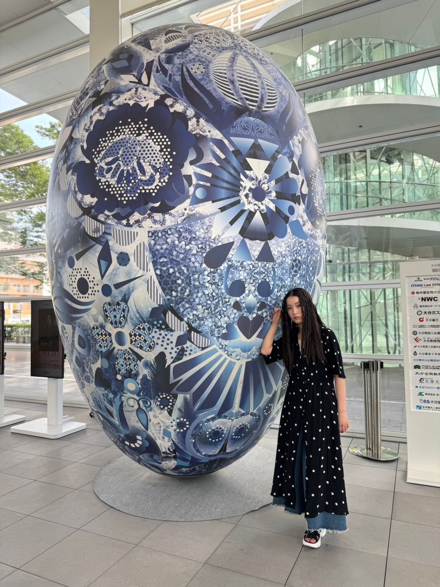 この巨大なタマゴ型オブジェはマルセル・ワンダースの《ユーラシアン・ガーデン・スピリット》起き上がりこぼしと同じ原理で、軽く押すと倒れずにゆらゆら揺れておもしろい✨!見た目もめっちゃキレイだよね✨