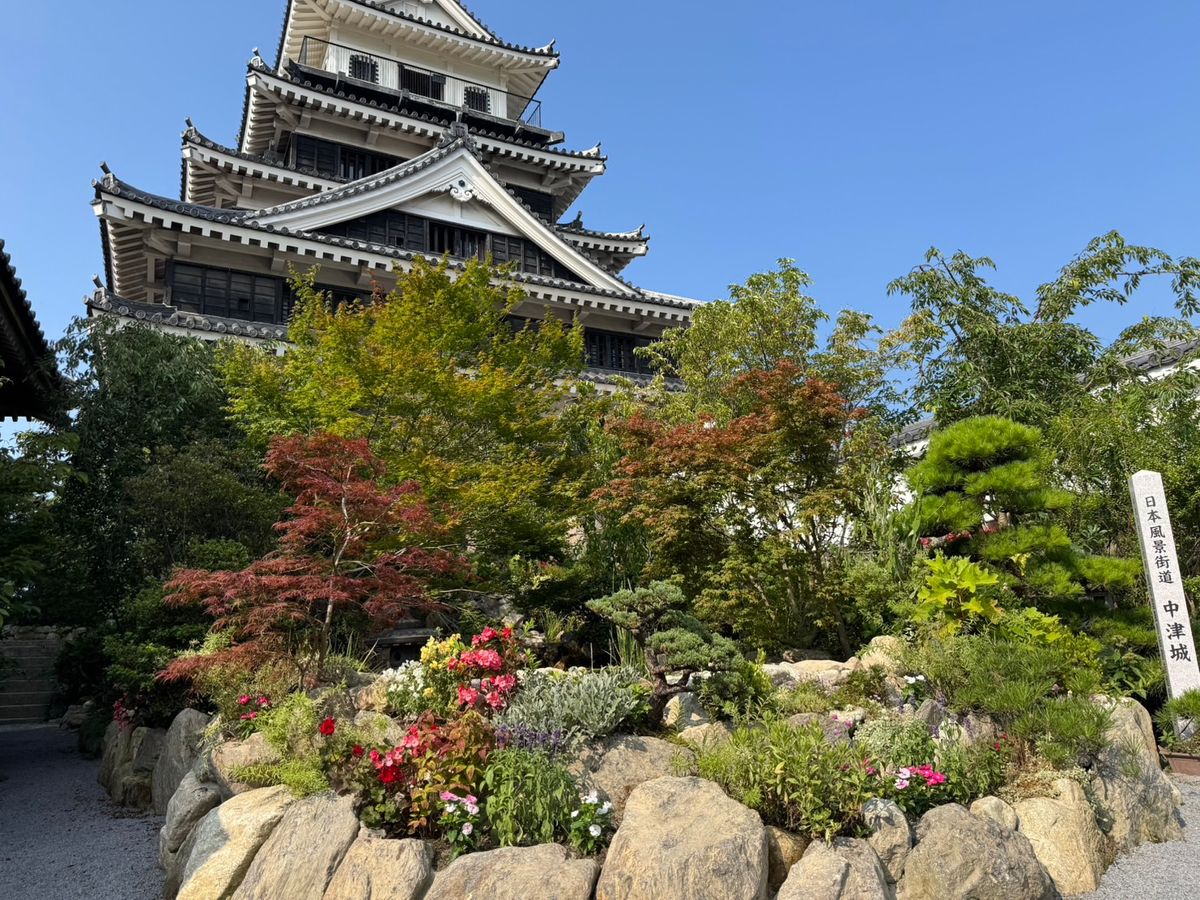 中津城は、今年世界的な庭園デザイナー石原和幸氏の監修の元、日本唯一の「花城」としてリニューアルして、城外も城内もお花がいっぱいで映えスポットになってます💐✨
