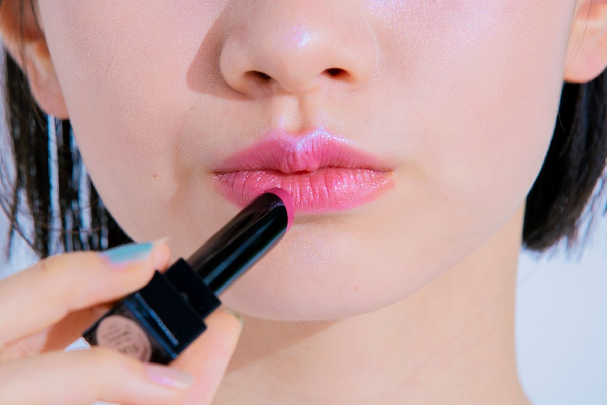 ④ブルーメイクにはスモーキーピンクが相性バツグン♡ くちびるの上にのせたハイライトがかわいさを際立てる!