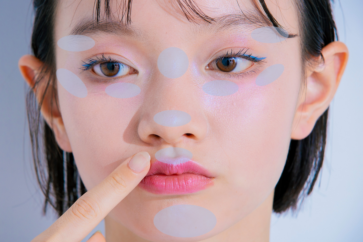 ③ハイライトを画像の◯部分にのせるよ。つやつやハイライトが大人見え♡ 広くぬるより、指やブラシでかるくポンポンとのせよう!