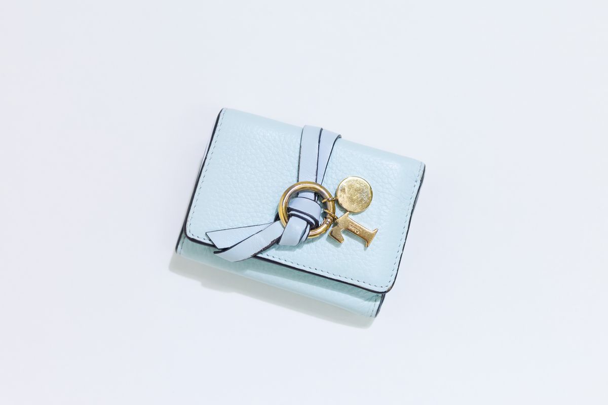 Chloé の三つ折りがずーっとほしくて3年前くらいに買いました。パステルブルー×ブランの組み合わせがかわいい♡