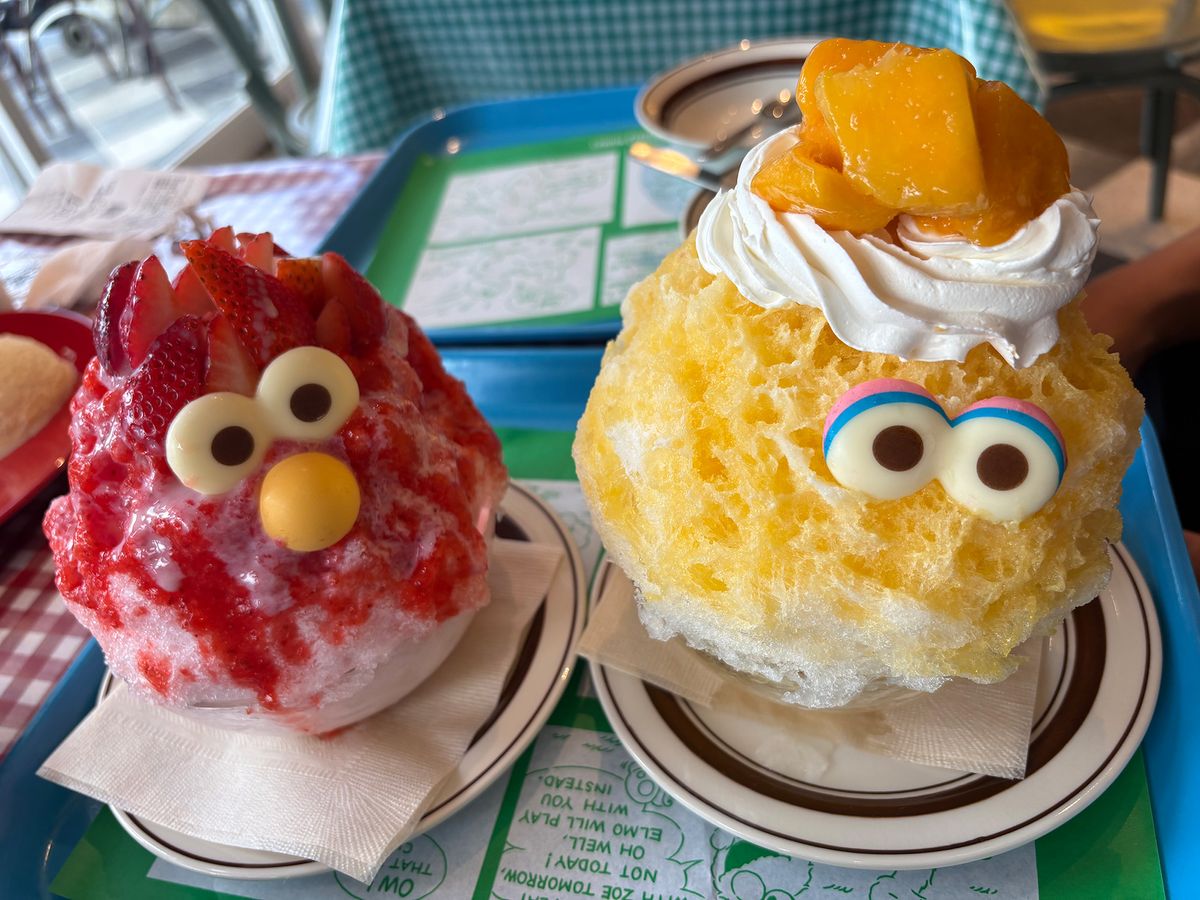セサミストリートカフェでもかわいいかき氷を食べてきました🍧✨見た目も味もばっちりで、つい写真もいっぱい撮っちゃいました📸