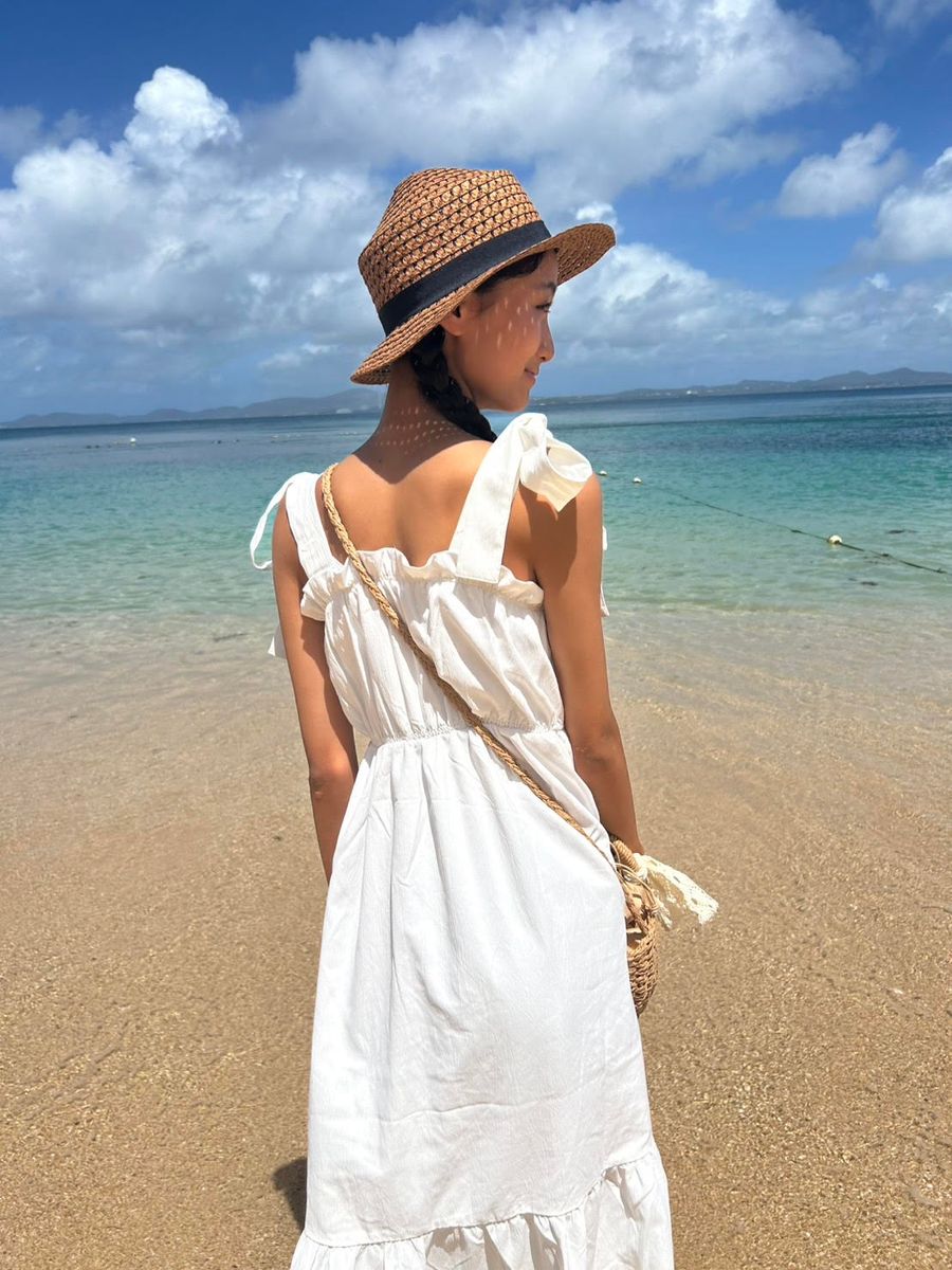 少し前のブログで言っていた、白いふわふわのワンピース着て、 麦わら帽子をかぶって、きれいな海で写真を撮る‼️っていう夏休みにやりたいことができました✨✨✨✨