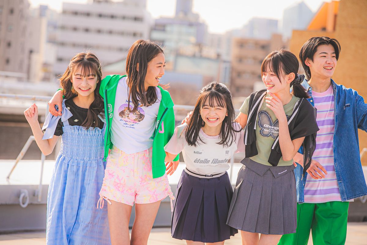 モデル[左から]:井口 美玲(ミレイ)、かのん、瑞島 穂華(ホノカ)、藤田 蒼果(アオカ)、犬塚 瑛斗(エイト)