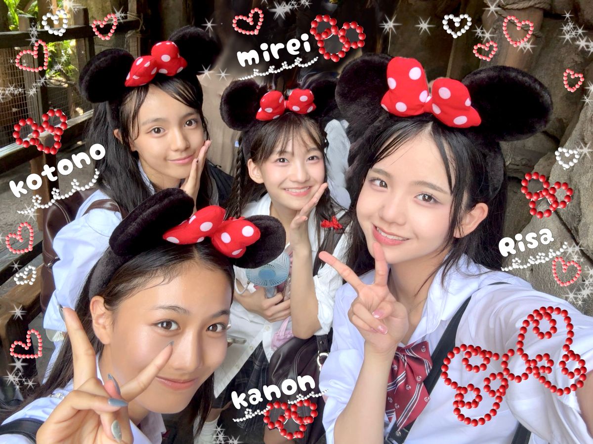 夏休みにプチ㋲のかのん、ことの、みれい、リサの4人でディズニーシーに行きました〜!!💞🐭🎀ずっと憧れてた制服コーデで、お揃いのカチューシャをつけたよ💗