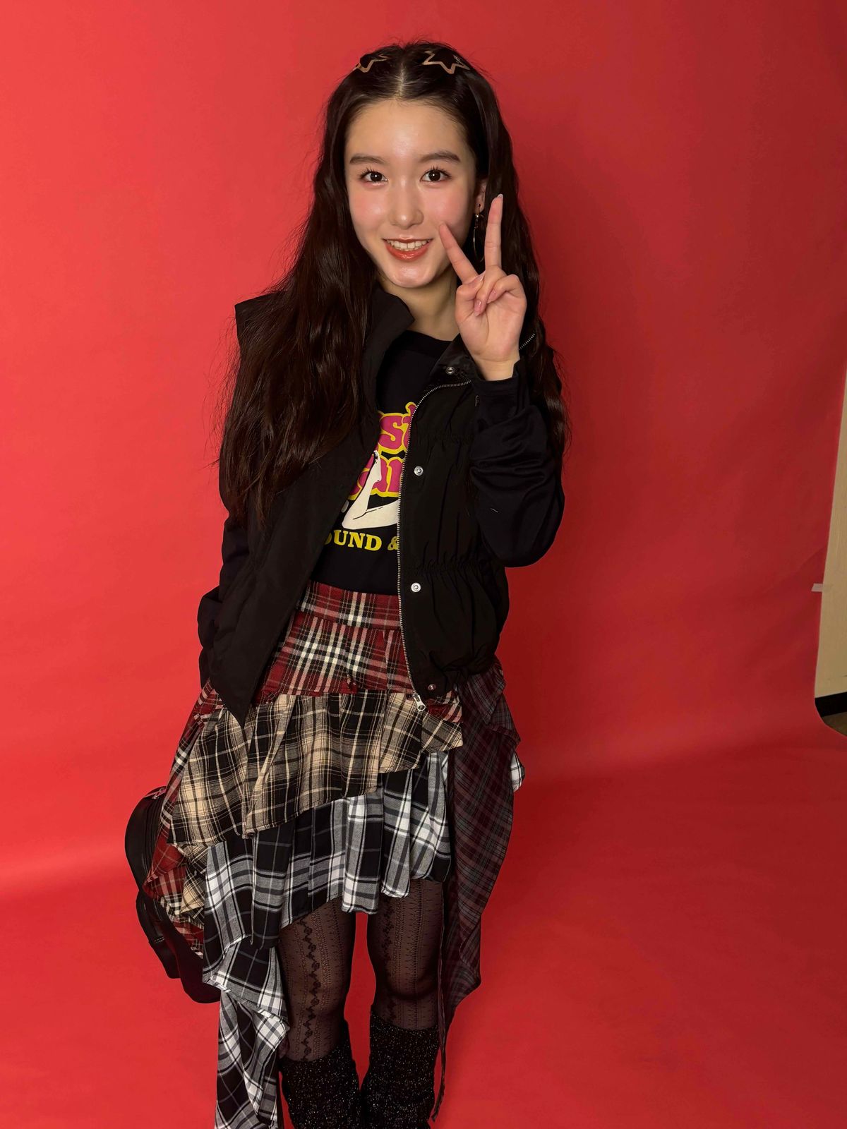 がちゃがちゃっとしたチェック柄のアシメスカートがロックっぽくておしゃ!