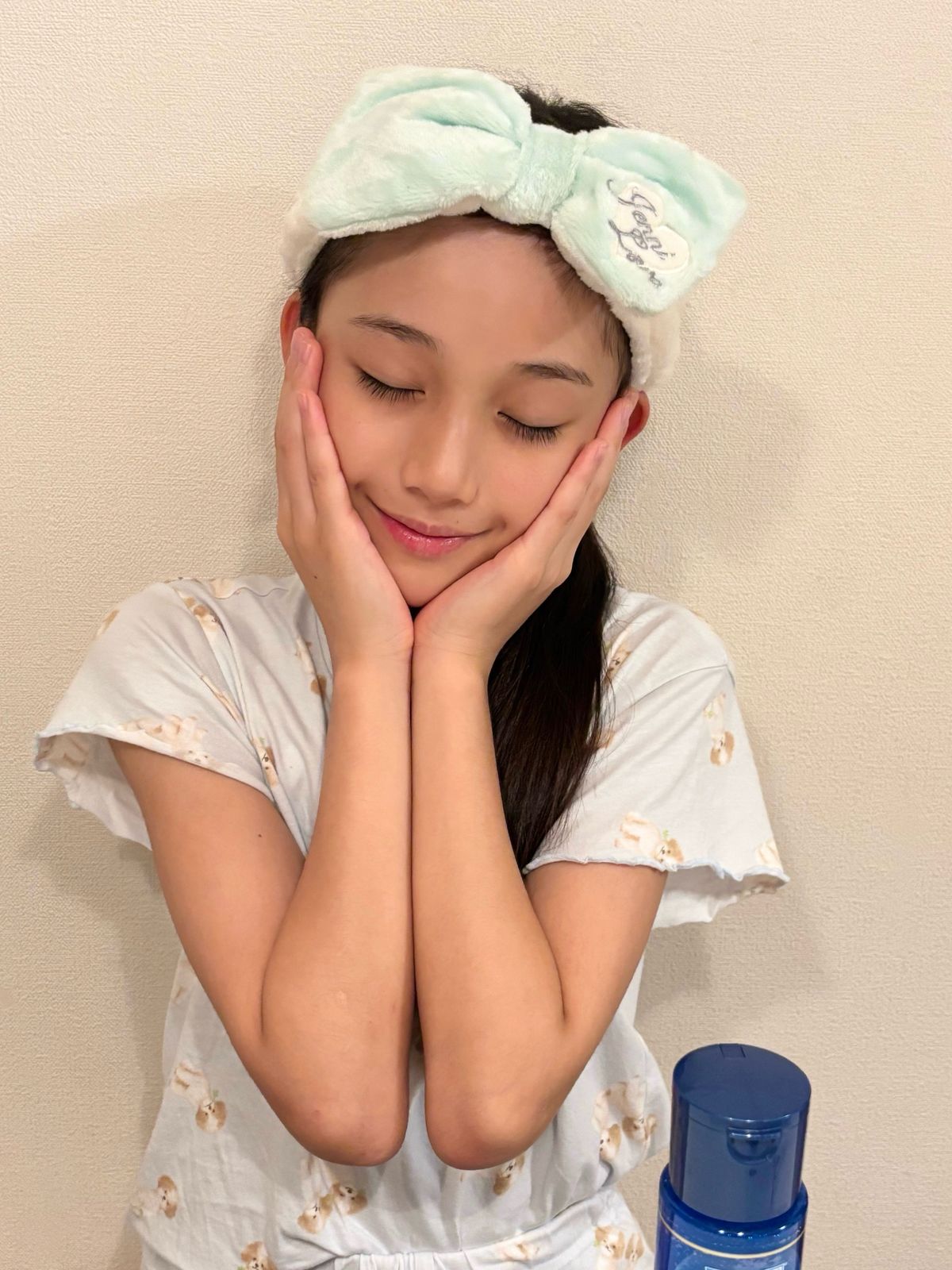 化粧水をたっぷりつけているよ! 手でしっかりと押さえて、浸透するようにつけるのがこだわり☆