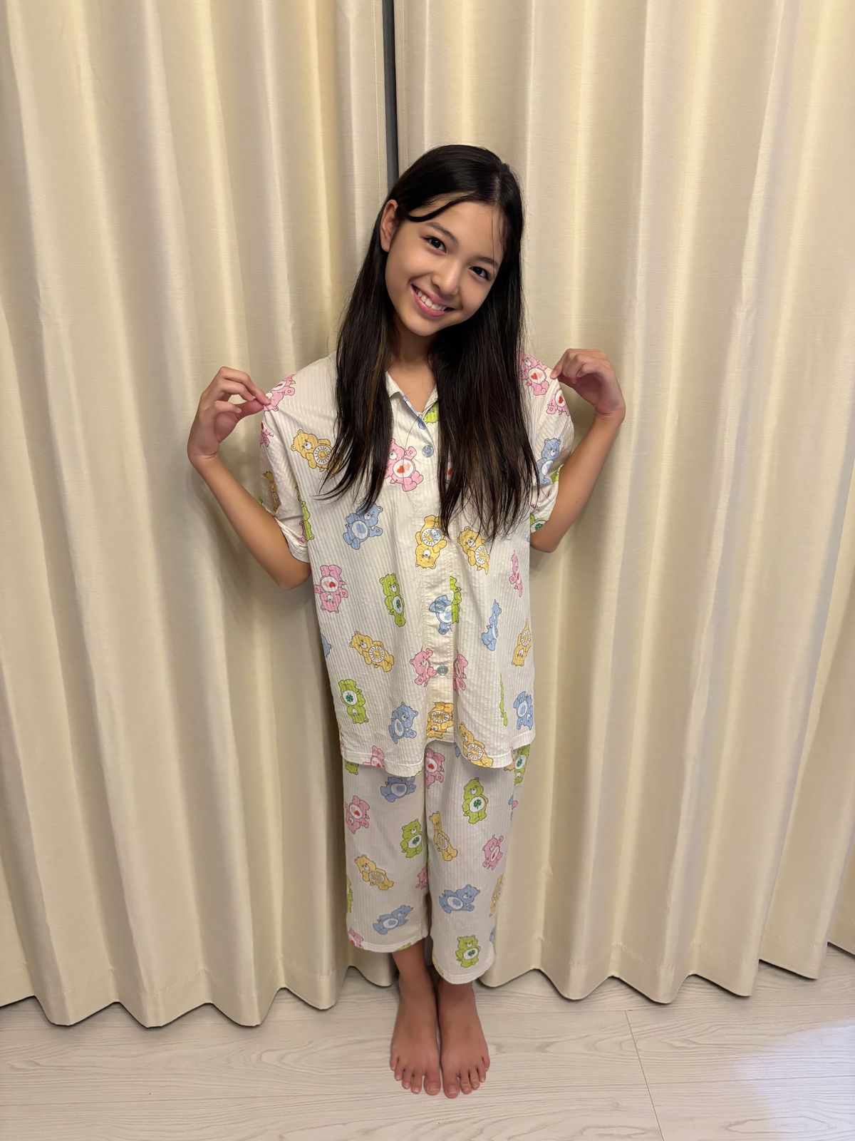 ルナのパジャマは、ポップでおしゃれな柄がポイント! 寝るときまで楽しい気持ちになれちゃう♪