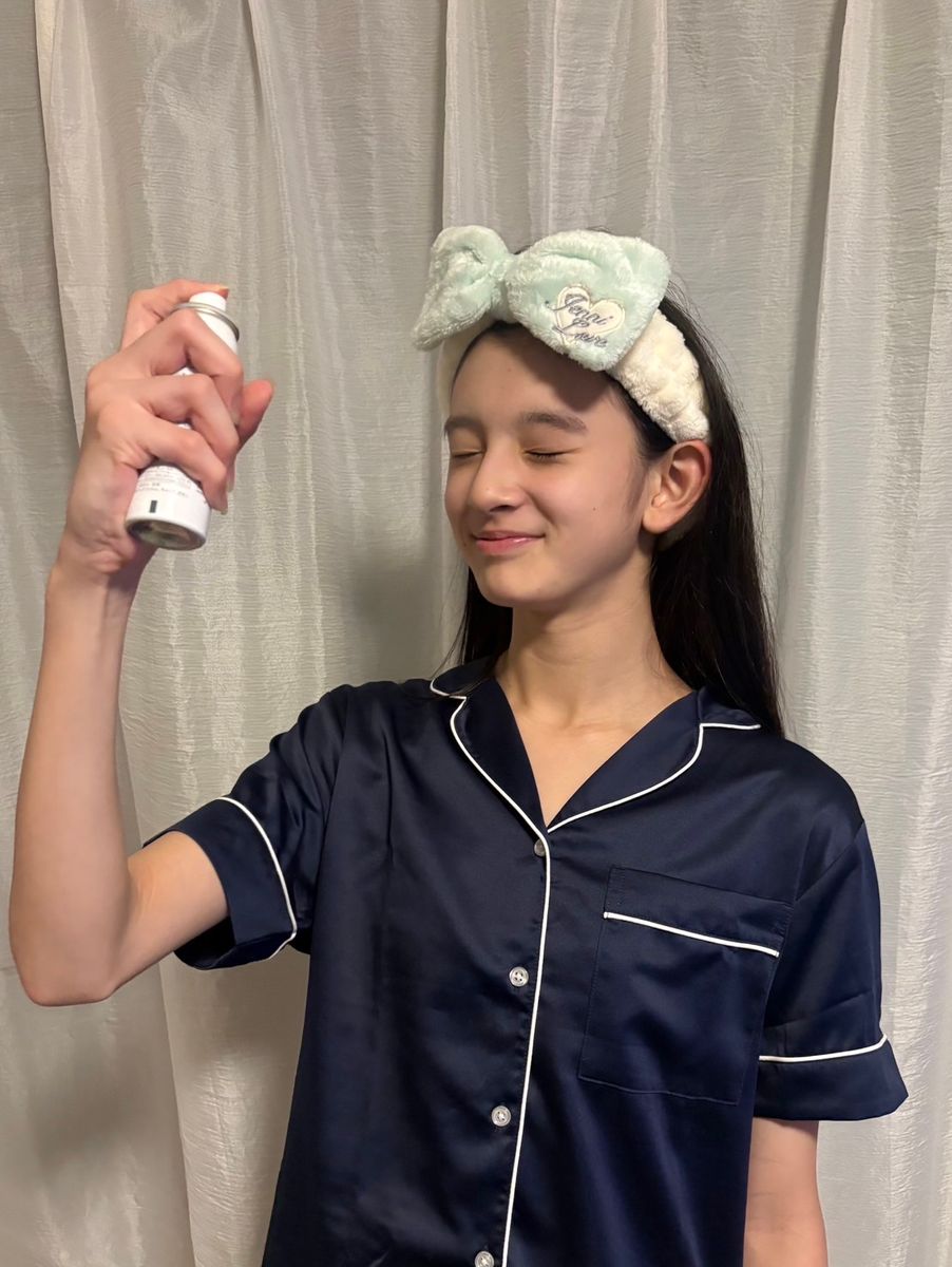 お風呂から上がったらすぐにアベンヌウォーター! そして、化粧水は肌に浸透させるイメージで、手でしっかりと押さえるようにやさしくプッシュしているよ♡