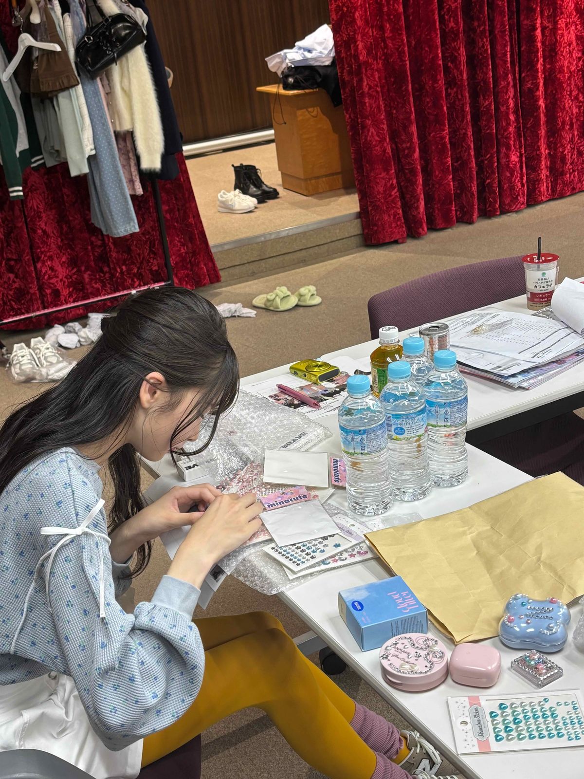 コスメをキラキラシールでデコる作業に夢中になっているのはキアラ。真剣すぎて、カメラに気づいてくれない(笑)。