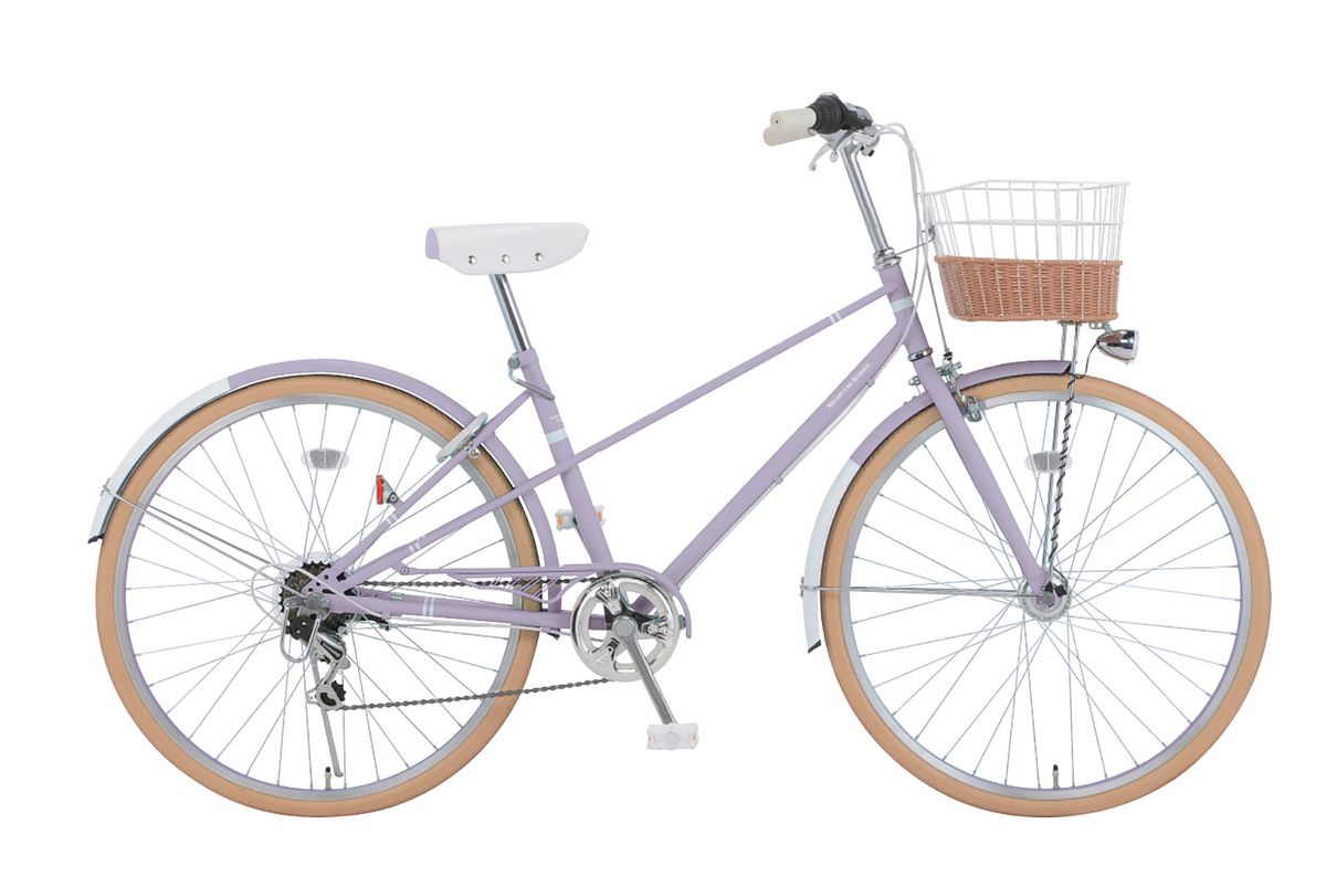 お姉さんっぽなホワイト×パープルデザインの自転車なら、どんなコーデにもぴったり☆ 街いちばんのおしゃれガールをめざそう♪