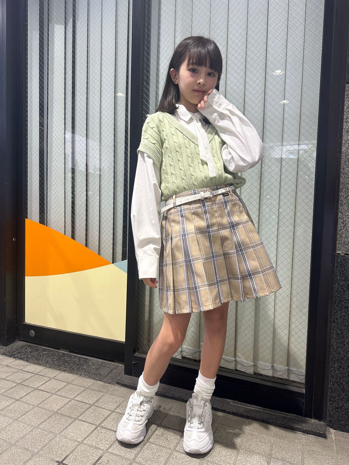ニコ☆プチモデルの私服連載「プチ㋲私服スナップメン㋲私服スナップ」。ありすはニット×シャツと、チェック柄のスカートで、プレッピーガーリーなコーディネイト。