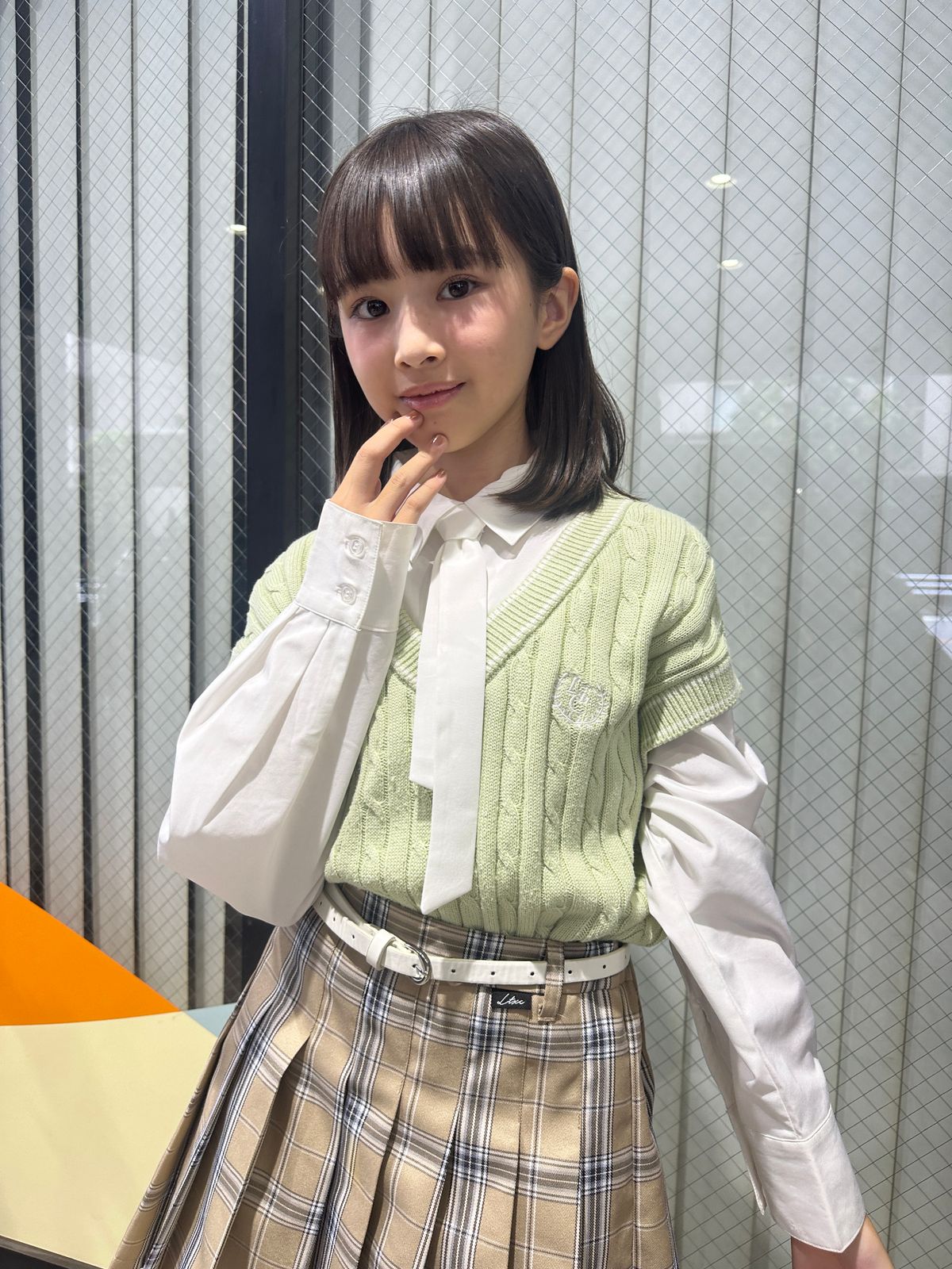 グリーンのニットベストがポイント♡【プチ㋲私服スナップ/国立 ありす】