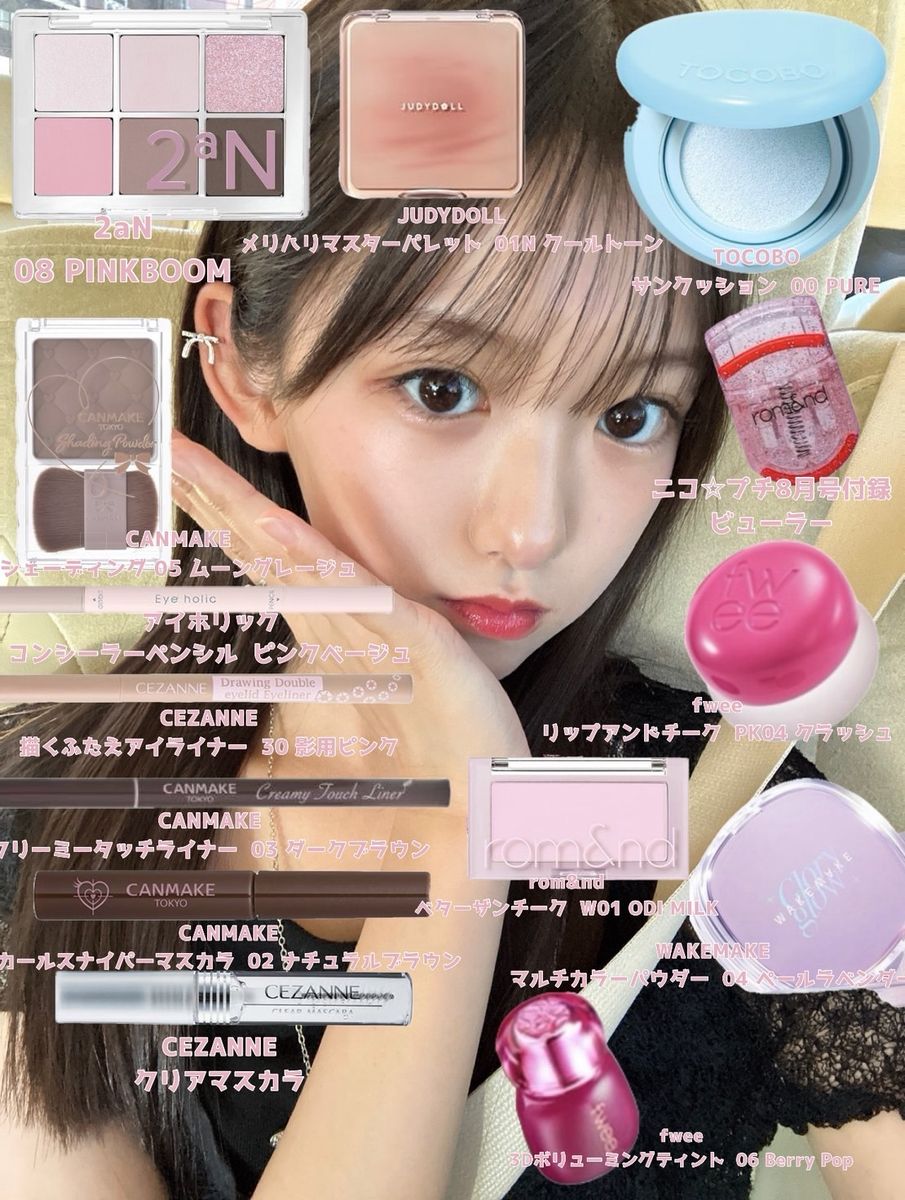 秋だけど可愛い雰囲気にするために全体的にピンクに🎀🤍アイライナーとマスカラをブラウンにして秋っぽくしたよ🍁🧡