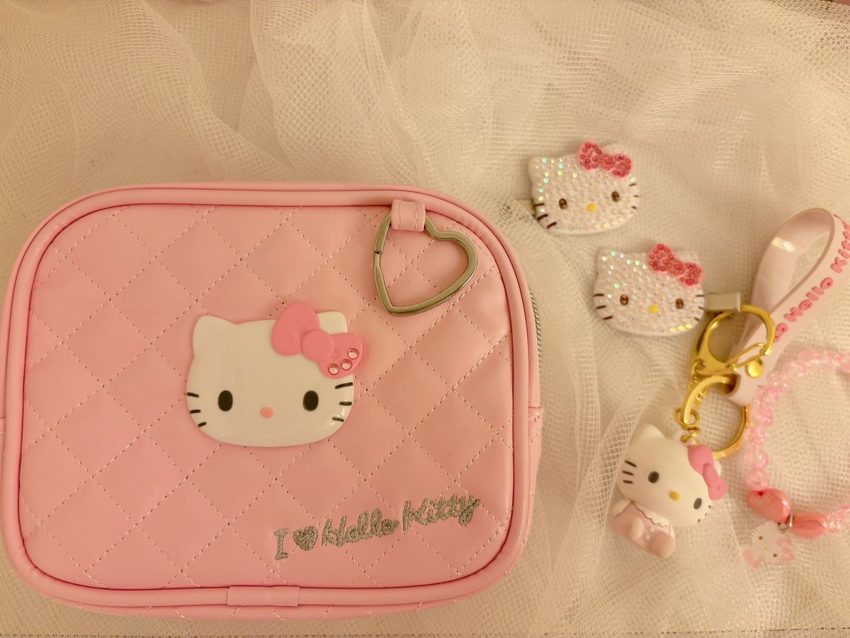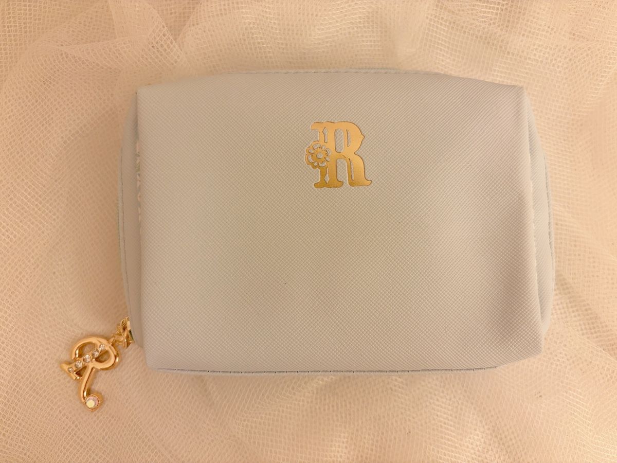 キティちゃんのポーチはキルティングなのがめちゃめちゃ可愛いっ🩷🐕サックスのポーチはイニシャルの刺繍が入っているところが特別感あってお気に入り🤍チャームもりむのRがついてるよ💓