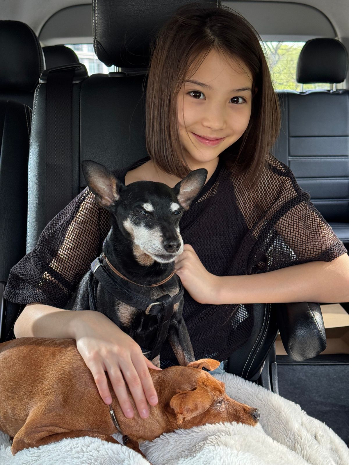 スシは私が生まれる前からお家にいた子でもう16歳! ロンドンから日本に来たんだよ。リマは保護犬で、3年前にお家に来たの。今はとっても元気だよ☆