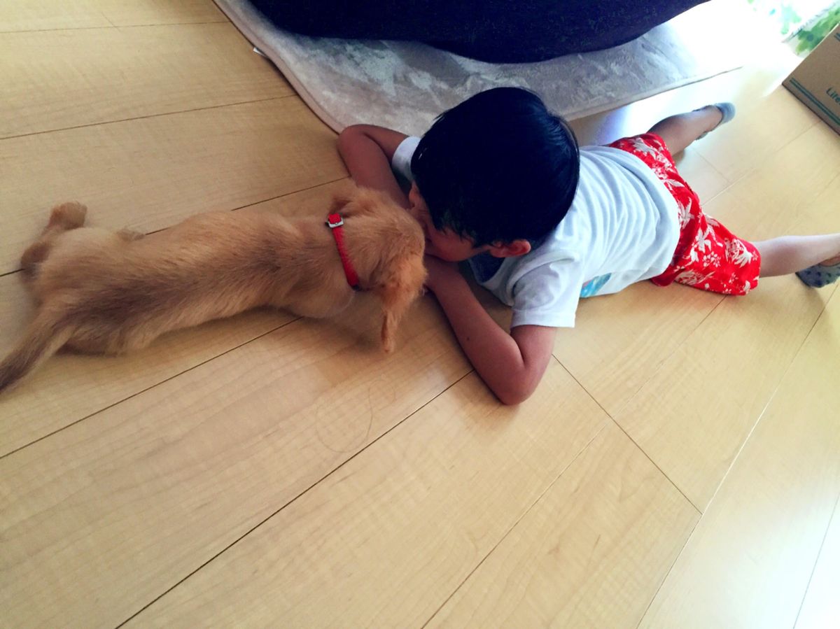 あおかは小さい頃からずーっと犬が大好きで、いつか飼うことが夢だったんだけど、お父さんとお母さんがサプライズで計画してくれていて、今年ポテをむかえることになったんだ!