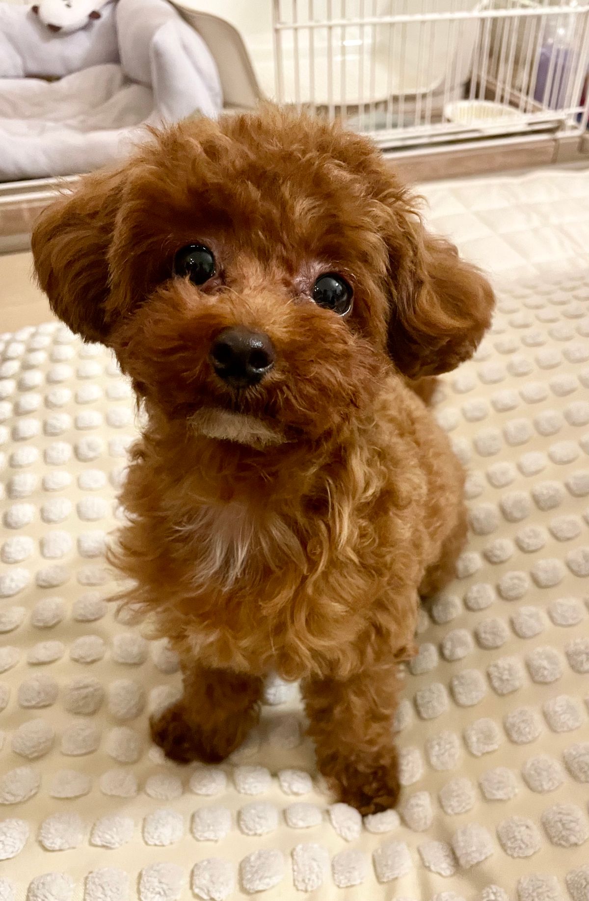 SNSで「ほしい人はいませんか?」という投稿をママが見つけて連絡したのがきっかけです。ママがミニチュアシュナウザーでパパがトイプードルのミックスのシュナプーの姫子は、シュナ柄のトイプーって感じでとってもかわいいの♡ まだまだギャルな2歳の女の子です!