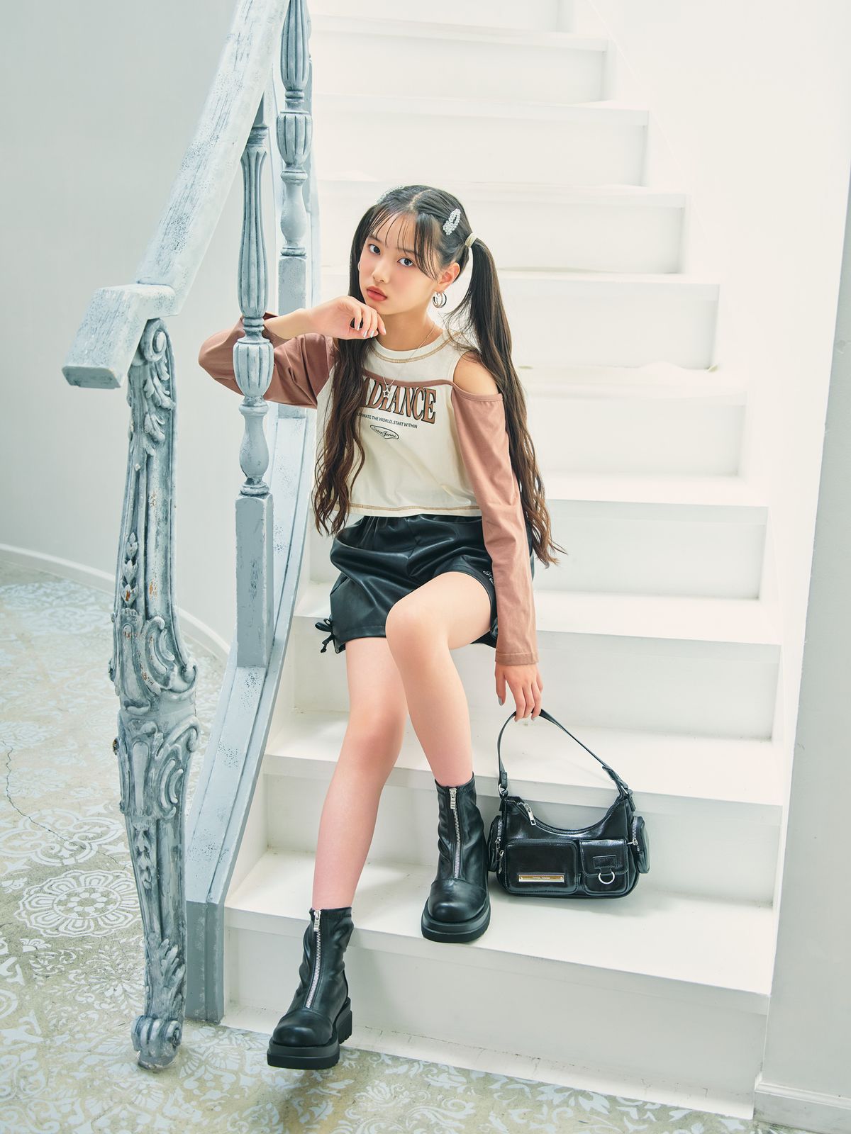 トワ☆ロンT¥3960/シスタージェニィ キュロット¥4950/ジェニィラブ ヘアピン(2個セット)¥330、イヤリング¥330/ともにラティス ネックレス¥550/パリスキッズ原宿本店 バッグ¥1999/グレイル ブーツ¥6390/AmiAmi