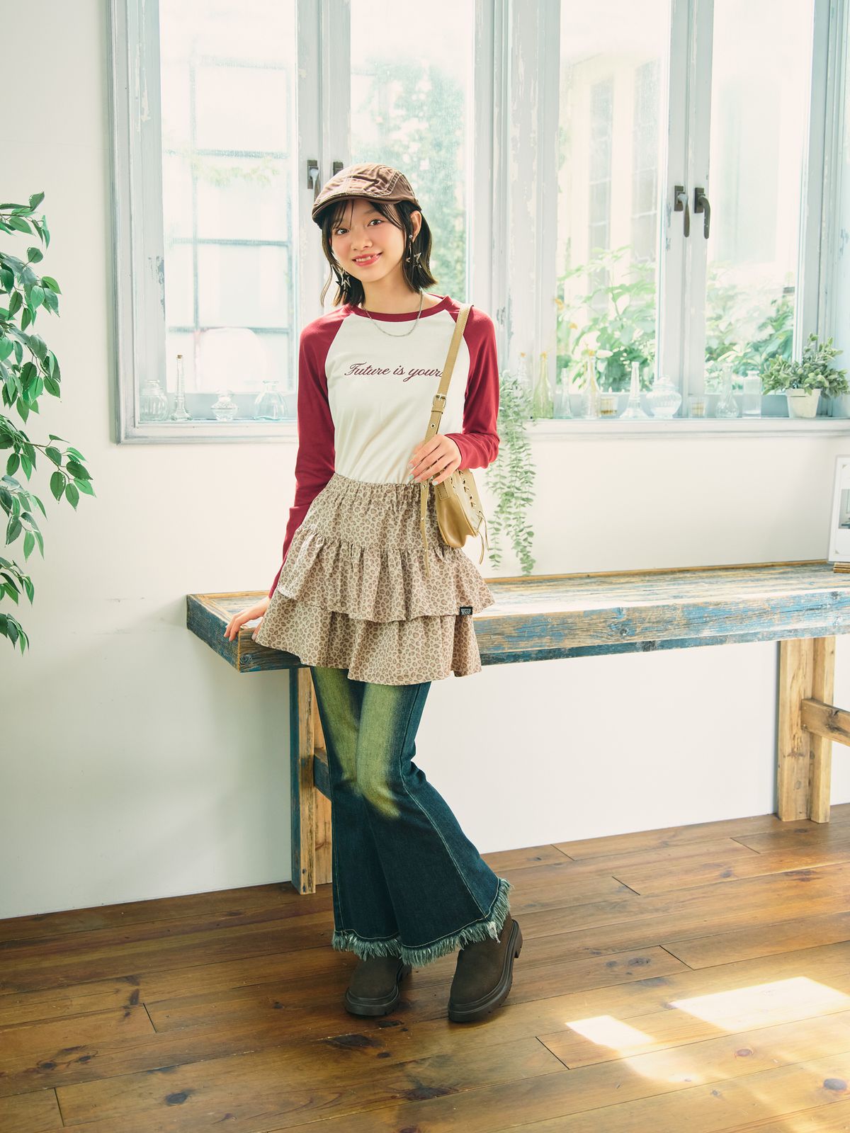 アオカ☆ロンT¥1290、ブーツ¥3990/ともにジーユー スカパン¥4950/シスタージェニィ パンツ¥4389/SPINNS ハンチング¥1100/ラティス イヤリング¥770/ミナキュート(メテオAPAC) ネックレス¥1320/パリスキッズ原宿本店 バッグ ¥4389/アルジー