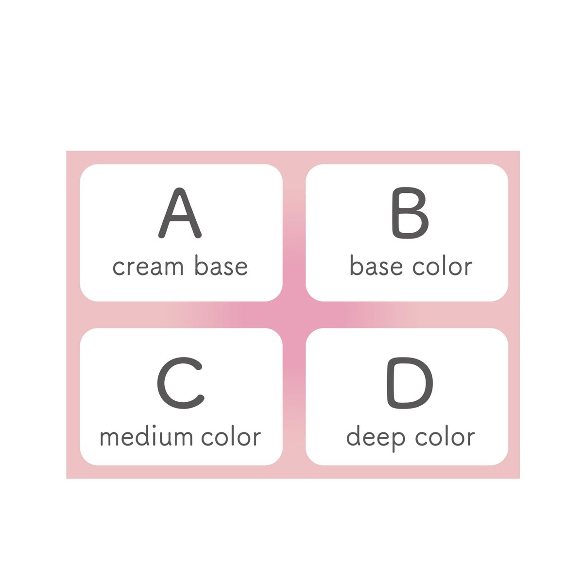いちばんのこだわりポイントは、左上のクリームベース。スキンケア成分が配合されていてまぶたの乾燥をふせいでくれる! この色を仕込むことで、目元に立体感が生まれるよ。まぶたのくすみを飛ばしてくれるから発色&色持ちもアップ♡