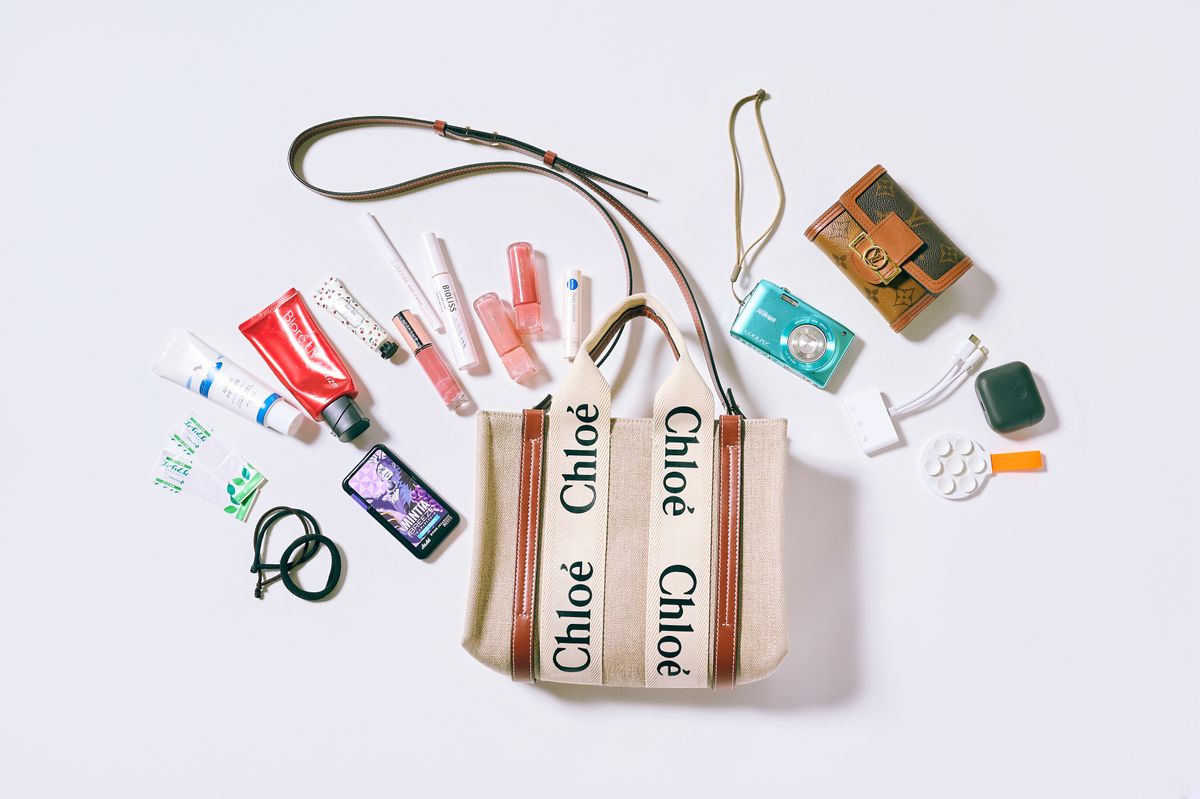 桜花ちゃんのバッグの中にはリップがたくさん! 流行りのデジカメも入っていて、さすがあこがれのお姉さん♡