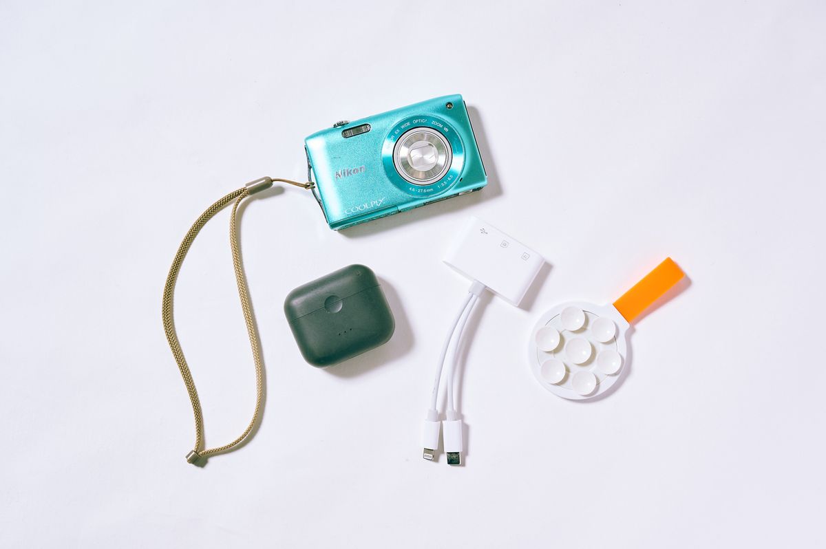 音楽無いと生きていけないのでイヤホンは絶対! なんでも写真に撮りたいタイプだから、最近流行りのデジカメと取り込む為のアイテムも♡ あとはどこにでも引っ付けることができる吸盤ちゃん🐙