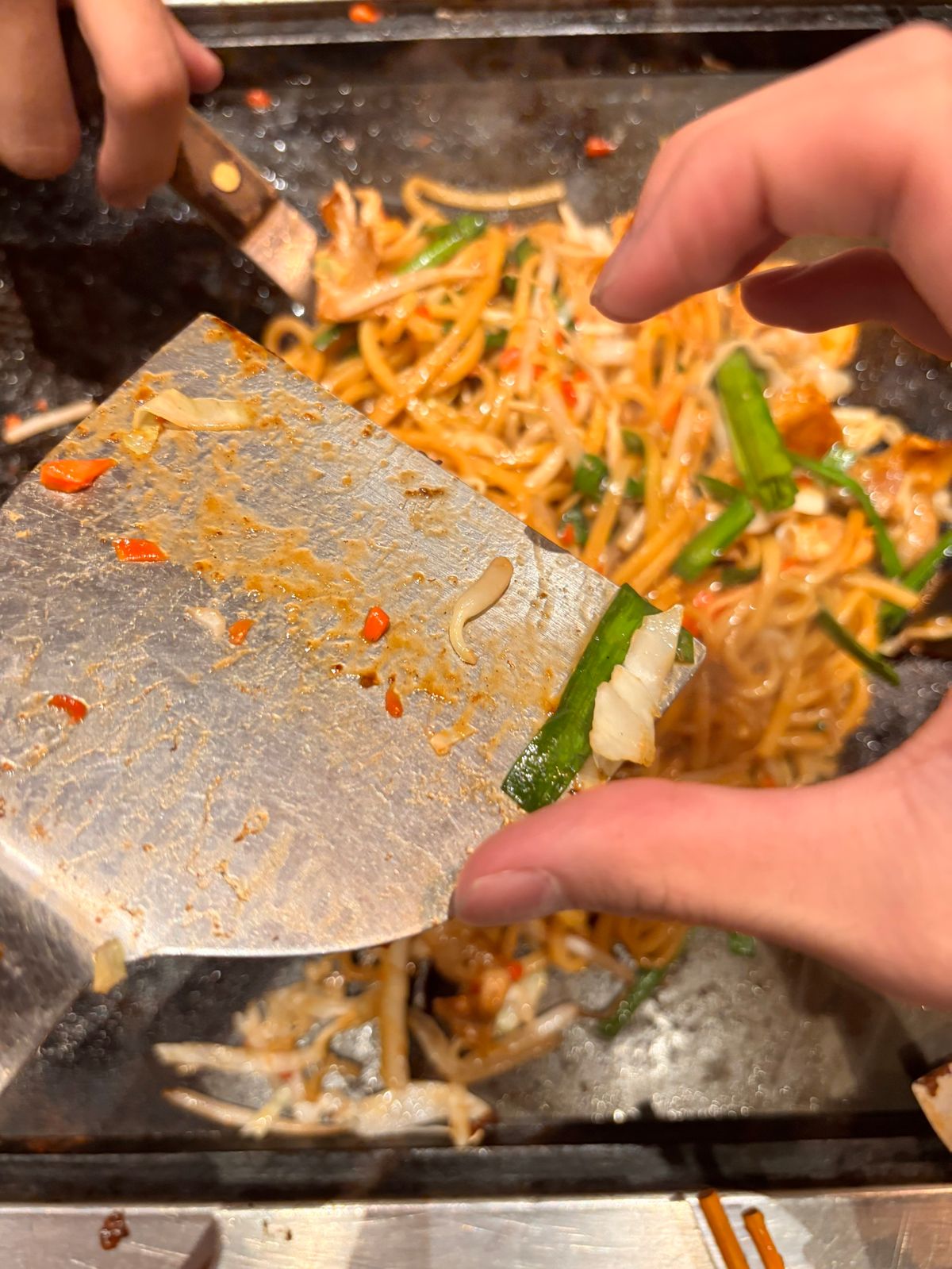 そして最近ハマっているもんじゃ屋さん‼️写真は自分たちで作った焼きそばの写真です!モンジャ屋さんて自分で作るから楽しいし余計に美味しいですよね!!