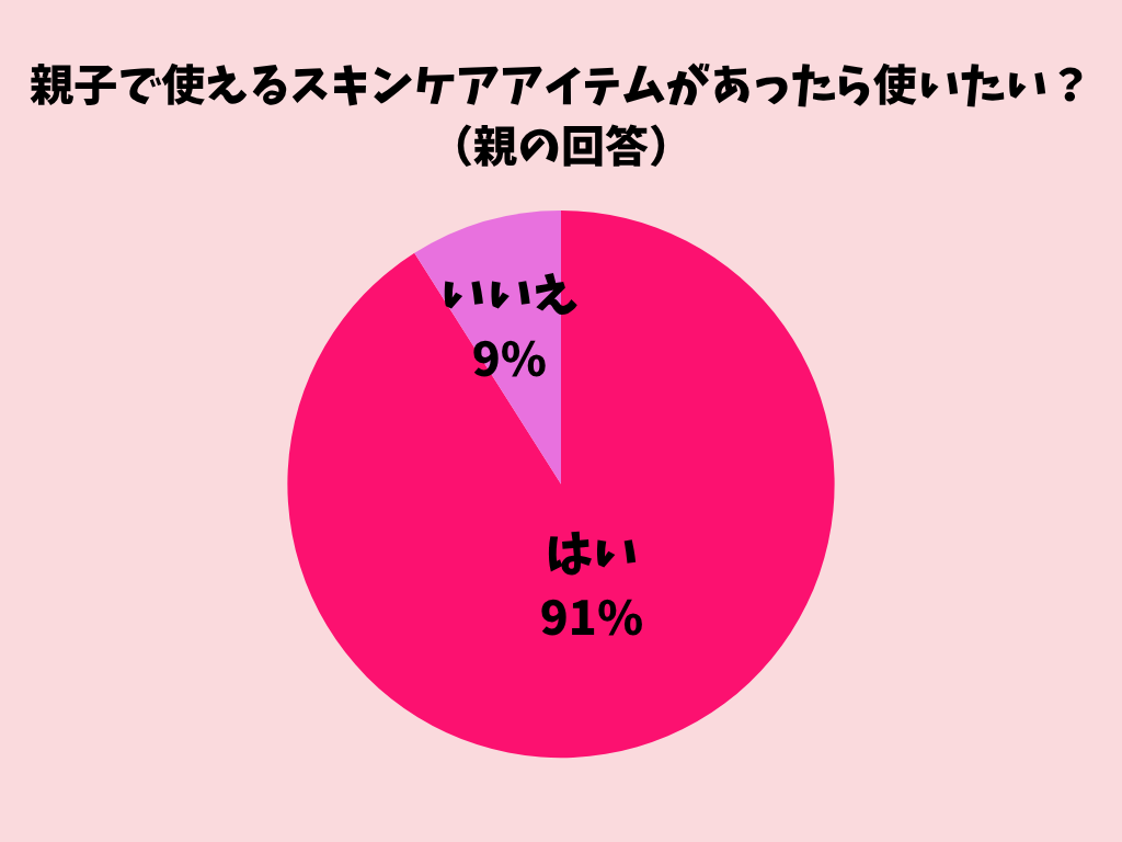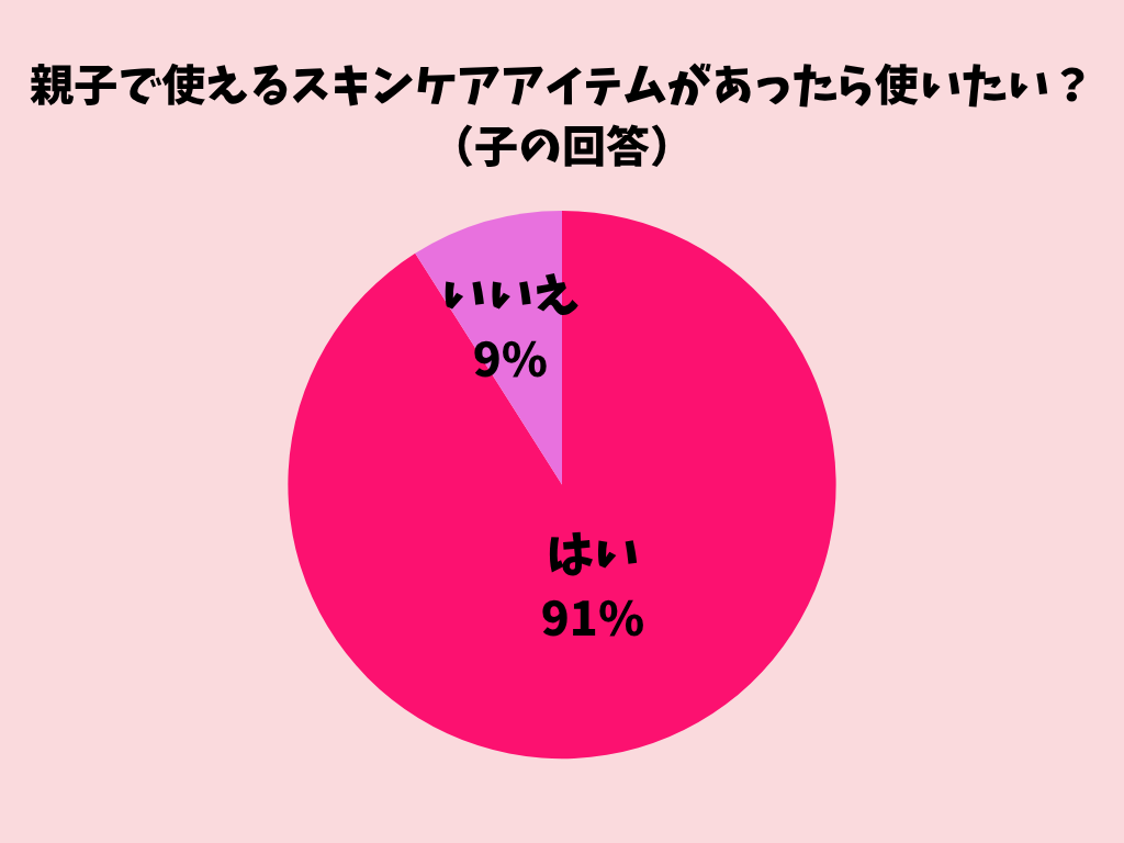 親子ともに「はい」が9割を超える結果に。共有アイテムなら、親は成分や安全性を確認でき、子どもは一緒に使うことで安心感を得られるようです。家族でケアするスタイルが、今後のスタンダードになりそうです。