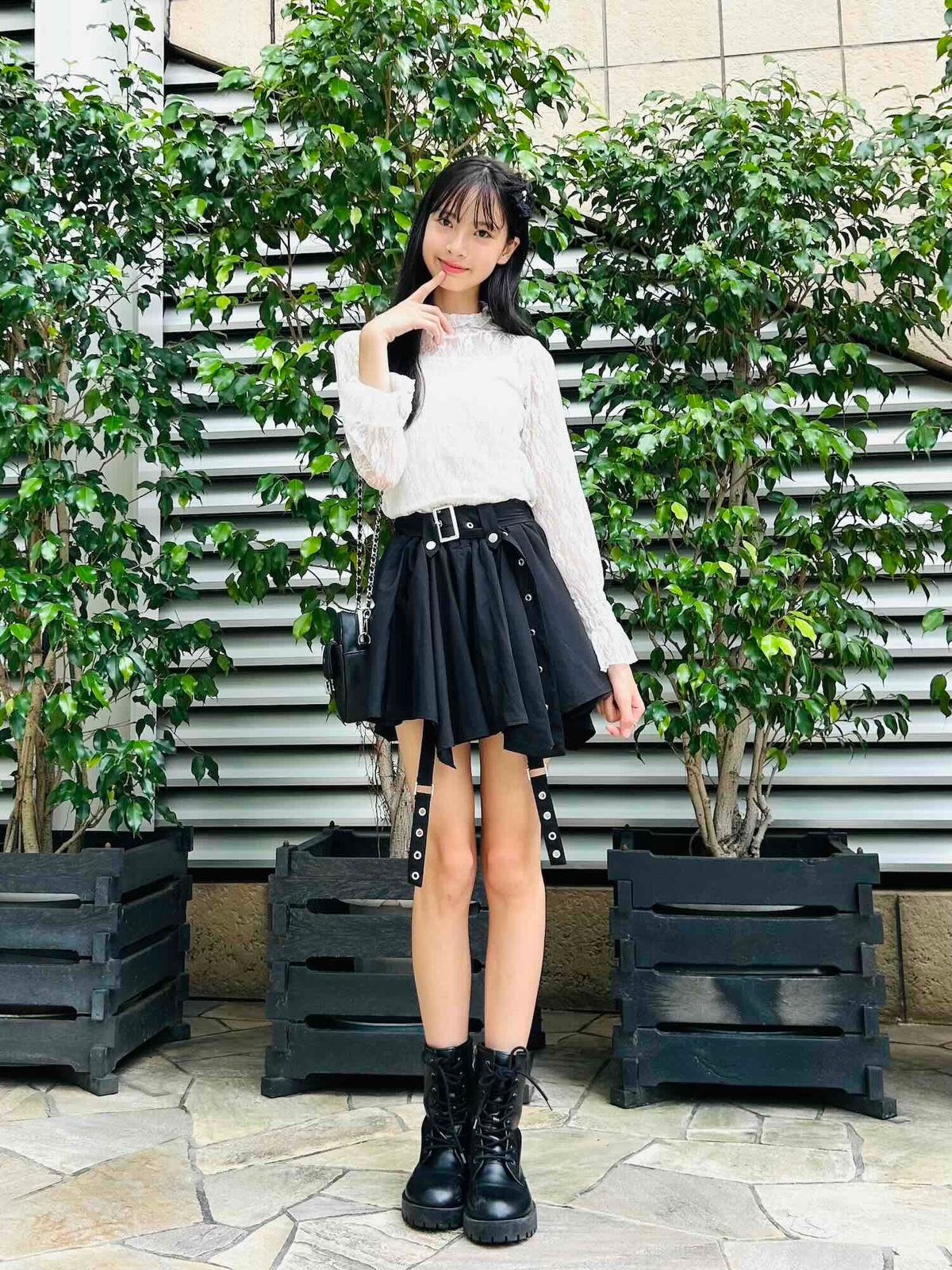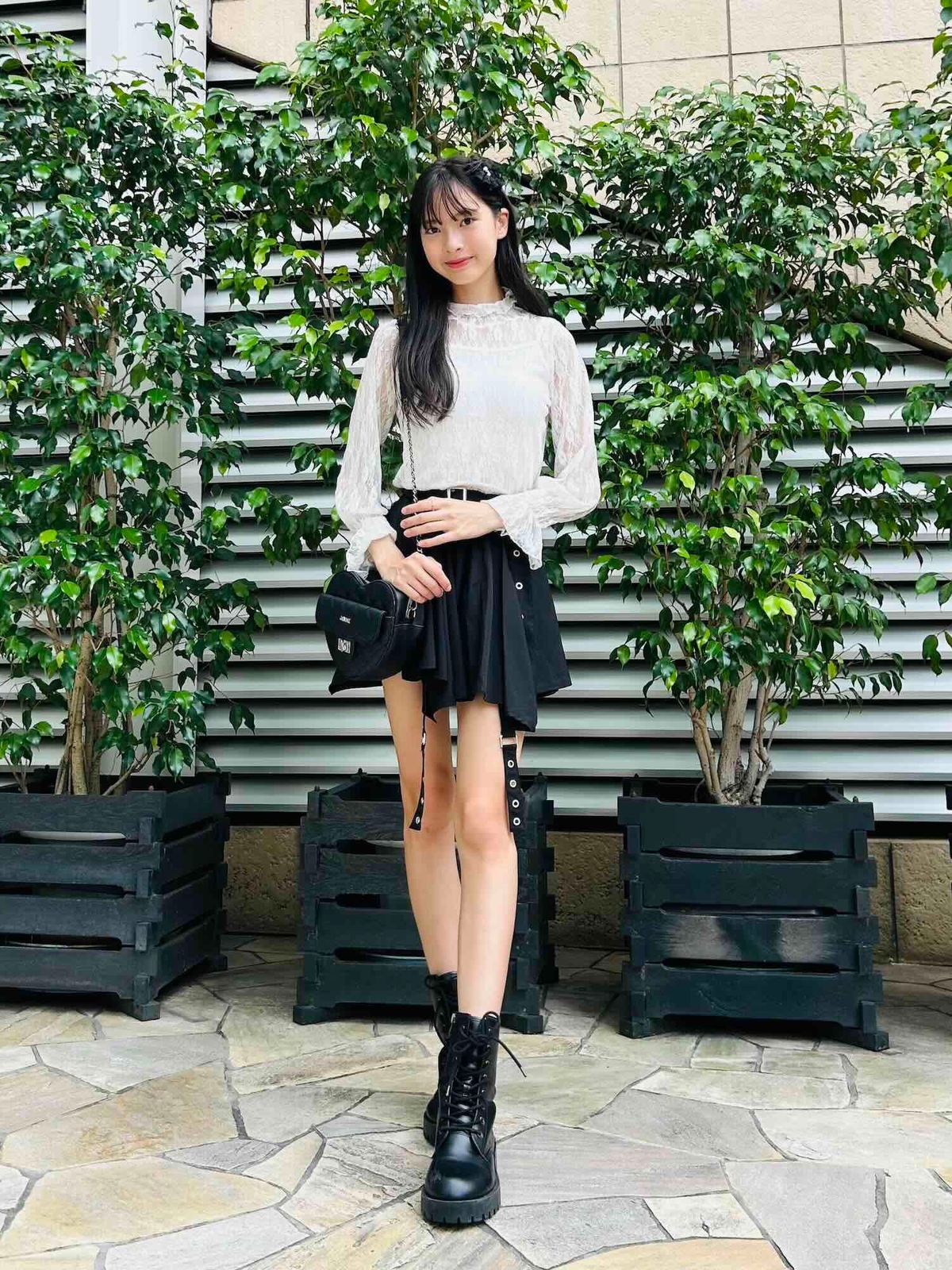 この日の全身コーデだよ!レースのトップスは、ガーリーにもカジュアルにも合わせやすくて、お気に入りのアイテムだよ🎀