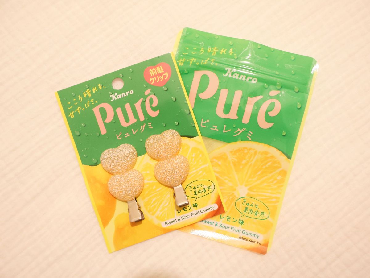 正解は、ピュレグミのカタチをした前髪クリップを ピュレグミのパッケージそっくりのチャック付きふくろに入れたものでした!
