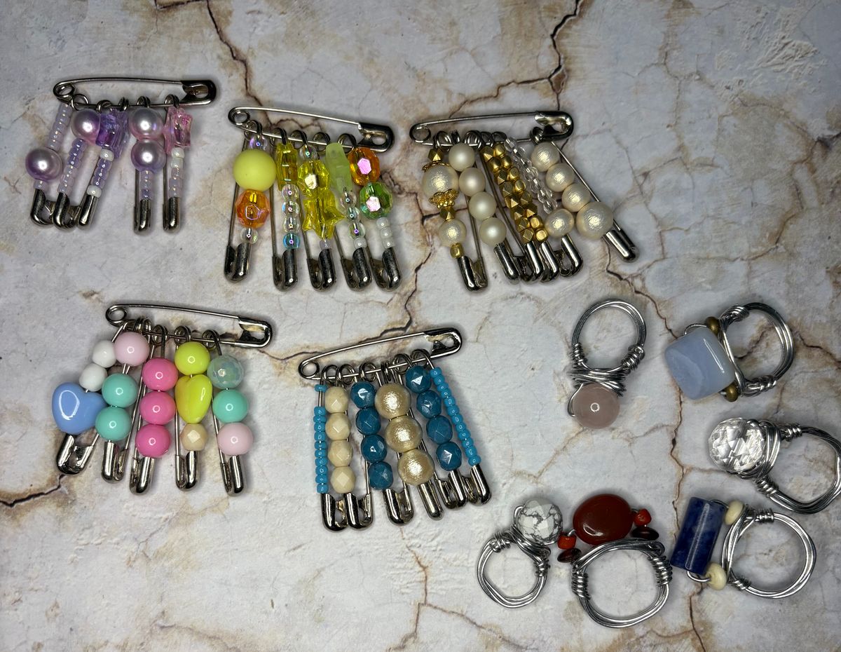 祖母がパワーストーンが好きで、その影響でパワーストーンの指輪を作った! ビーズブローチは小さいころに「何か作りたい!」となったときに、母が教えてくれたかんたんなアクセサリー☆ はじめて自分で作った作品!!!!