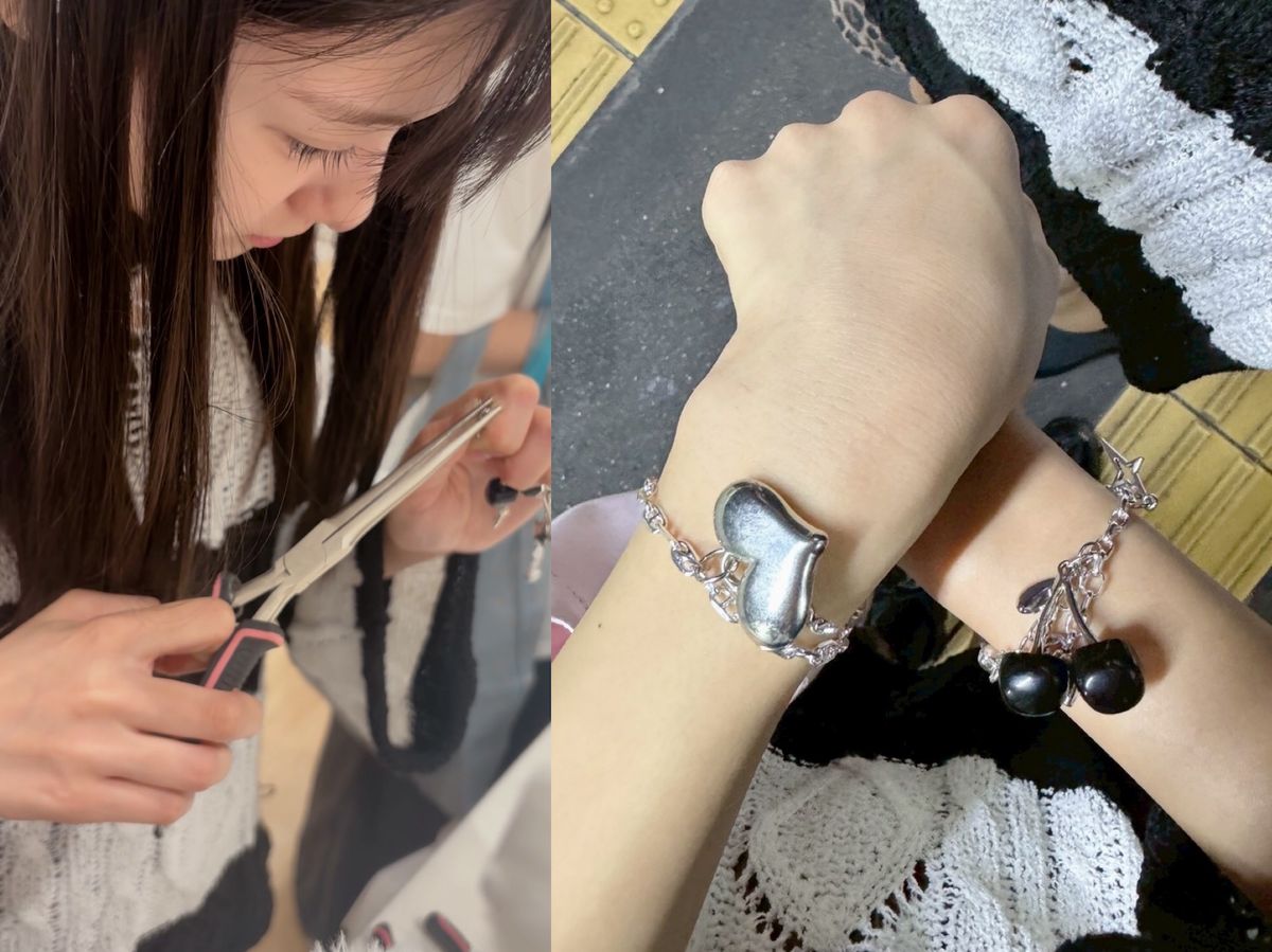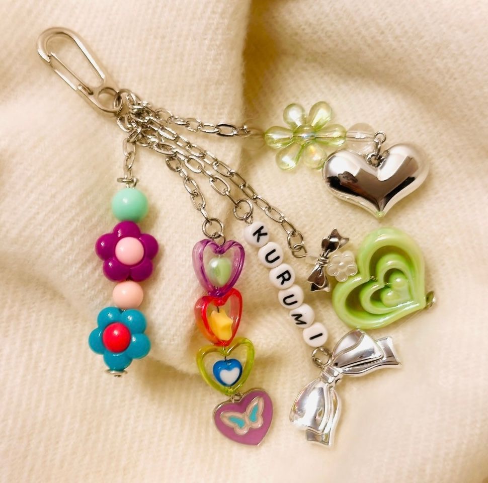 世界に1つだけのオリジナルアクセサリーを作りたくて、ちひなと一緒に作った♡︎ チェーンからチャームまで1つ1つバランスを考えながら選ぶのが楽しかった♪キーホルダー、スマホケース/小沢 ちひな