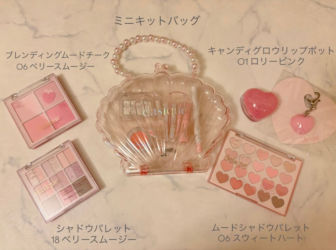 シェル型のバッグにミニコスメが入っててめちゃ可愛いの🥹この中に入ってるミニパールライナーがちひなのおすすめみたい💓早く使ってみたい🤍