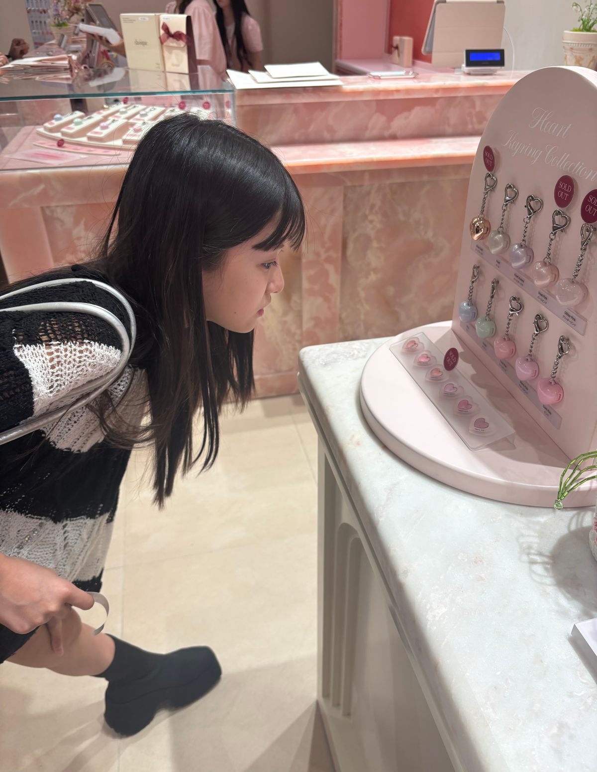 これの色違いの07.LoveHeartの方は、去年のニコ☆プチオーディションの帰りにママに買ってもらって持ってたから「なつかしい〜!」ってなったよ💗オレンジっぽい色味はあんまり持ってなかったから、秋メイクに使えそうでうれしい🍁🍂ハートキーリングを選んでる時、夢中になりすぎて足の角度おかしい…笑🩷