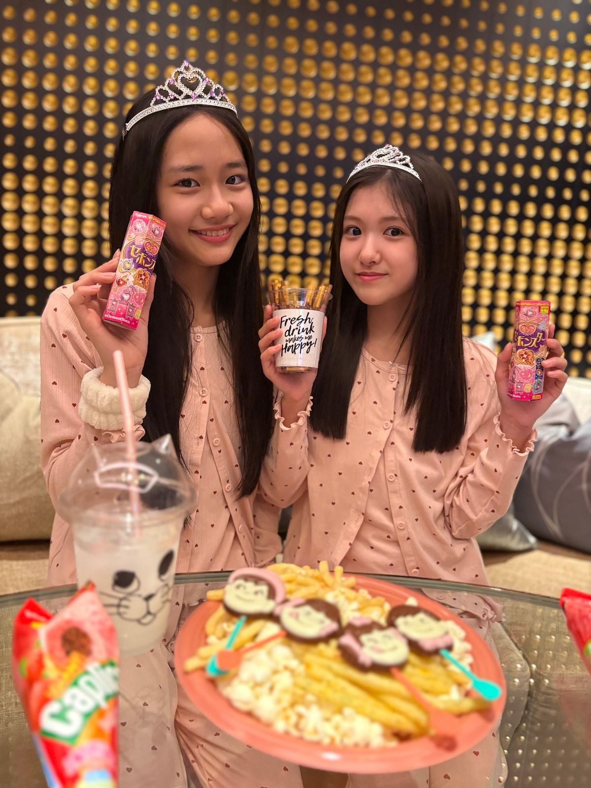 そのままりむとパジャマパーティすることもできました♡「今日はチートデー!」と決めて、お菓子とジュースと100均で買ったティアラでパーティ🎀セボンスターの開封動画なんか撮ってみたりして、めちゃくちゃ楽しかったです!