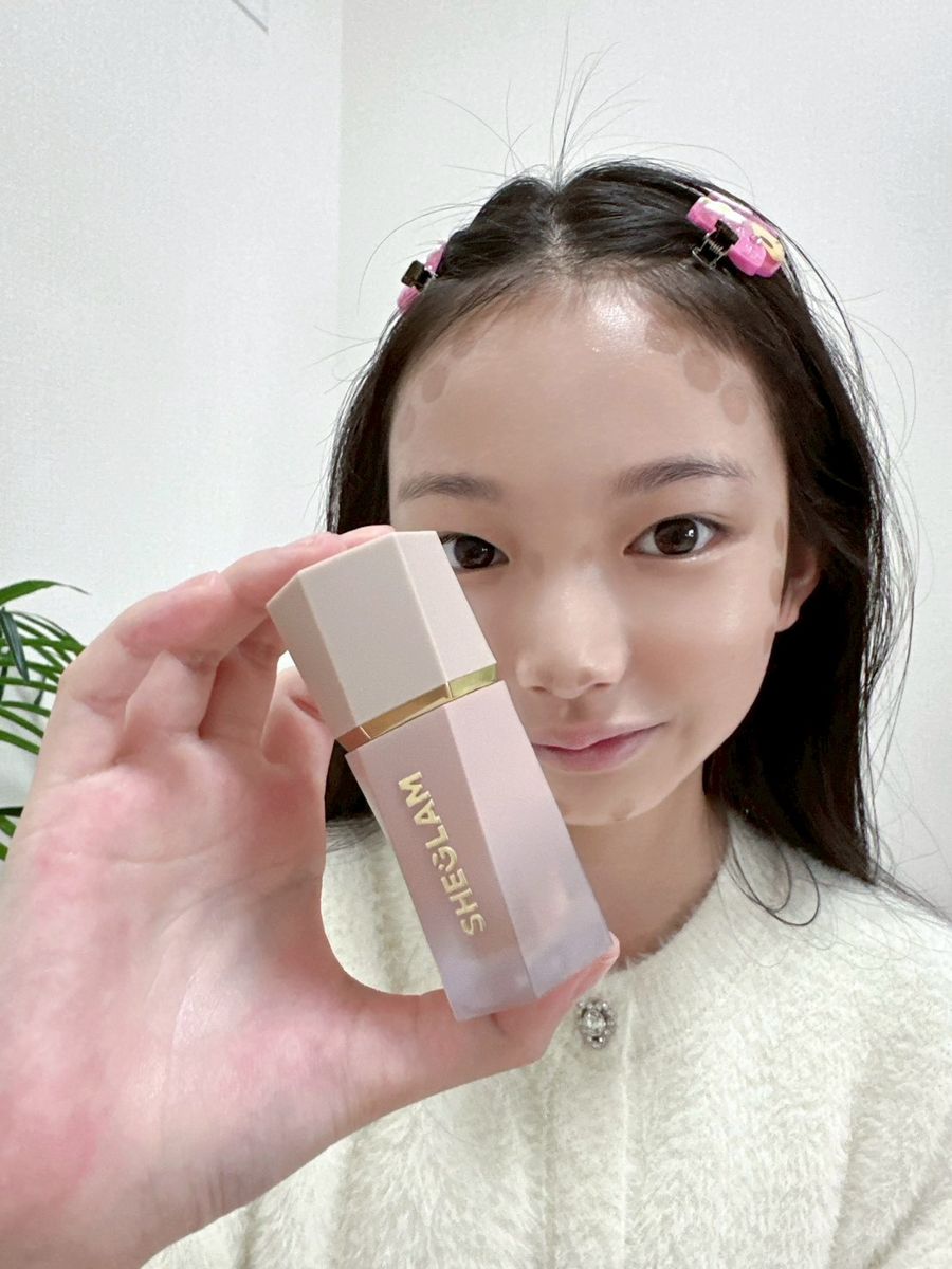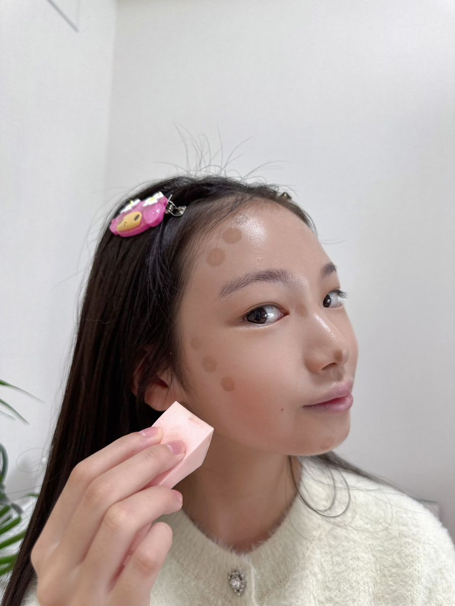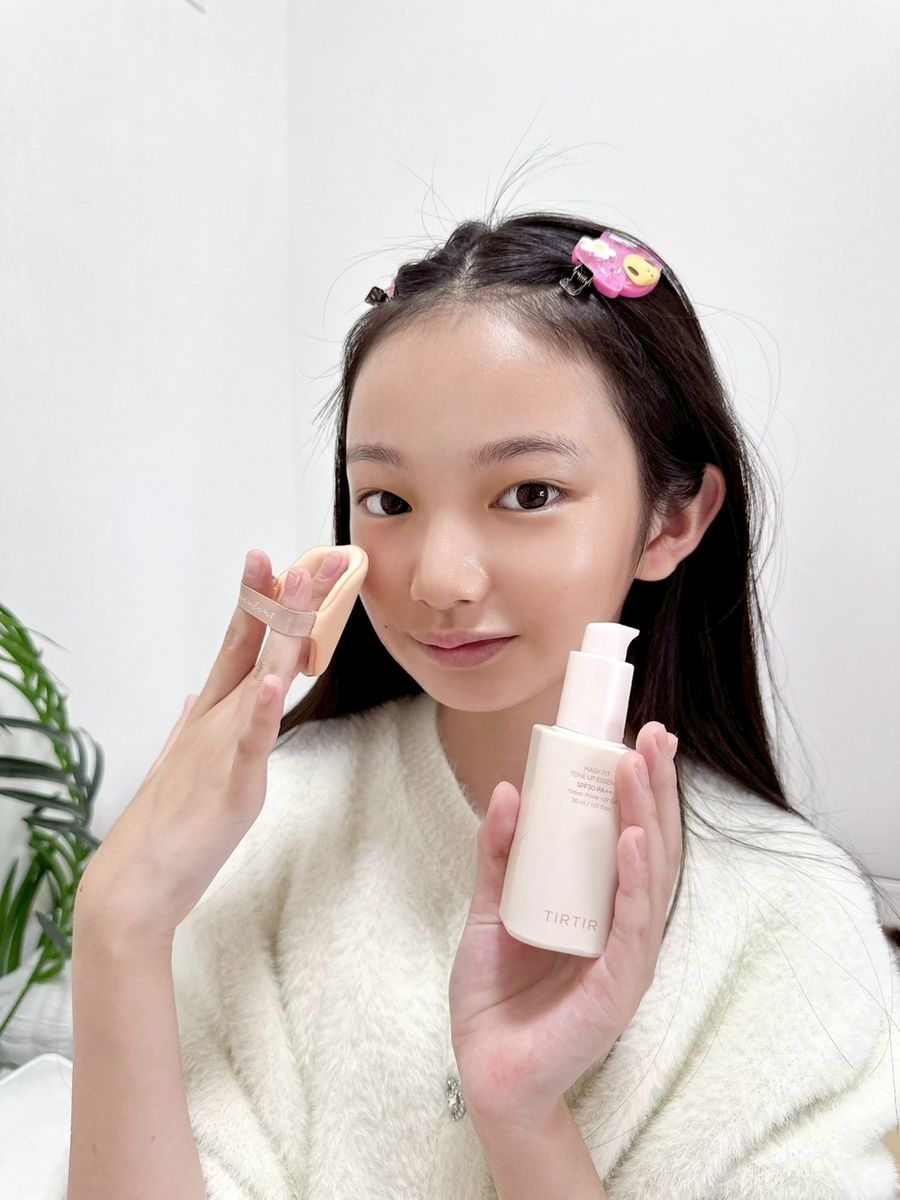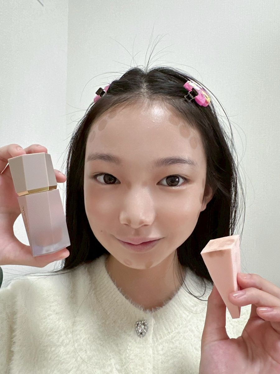 その後はティルティルの下地をお肌にポンポンのせていくよ‼︎モモ流のポイントは美容液をちょっとまぜて、うるおい感を出してるよ👩💗✨