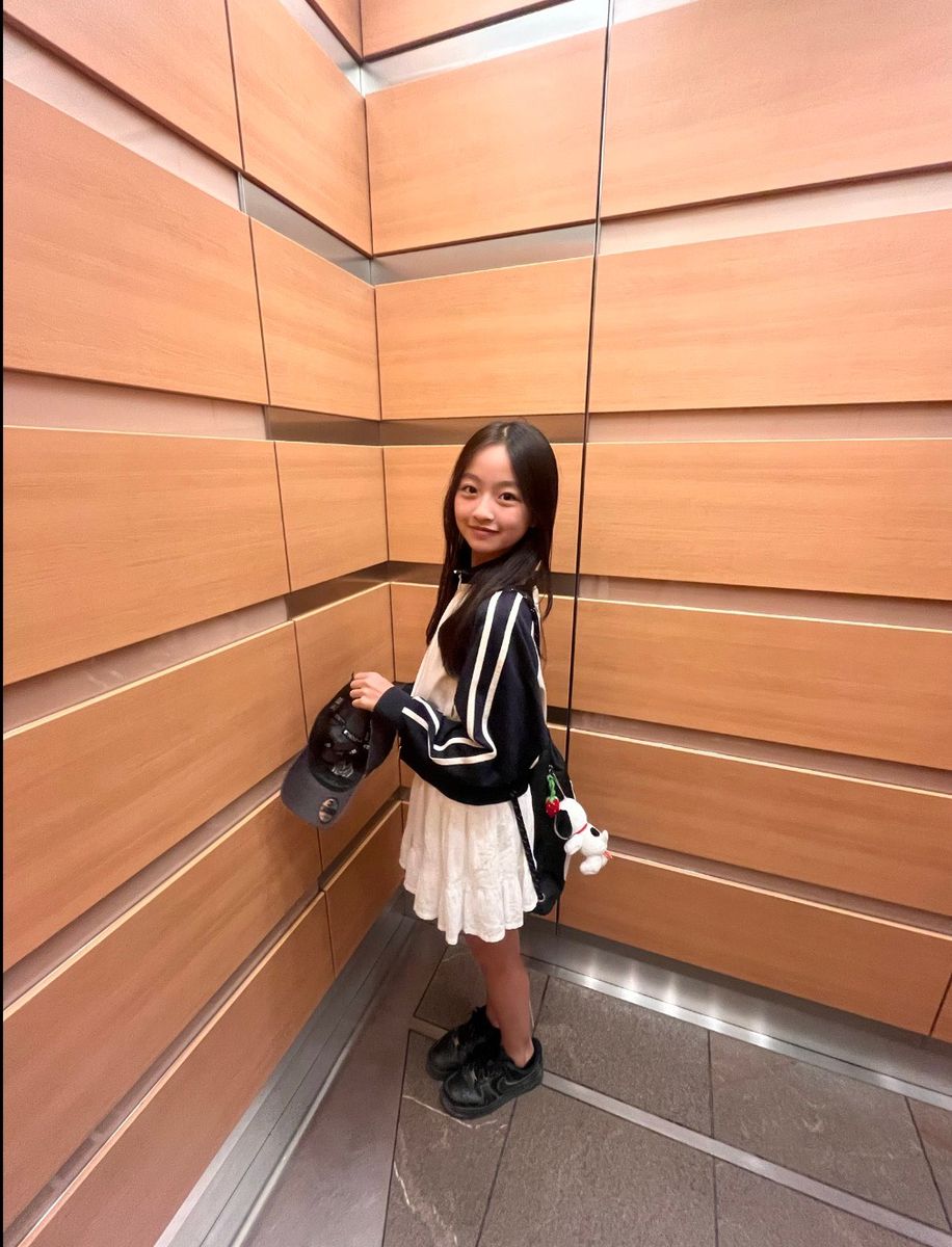 これはエレベータの中で撮るプリクラが流行っていたからそれ風に撮ってもらった写真🤳♡