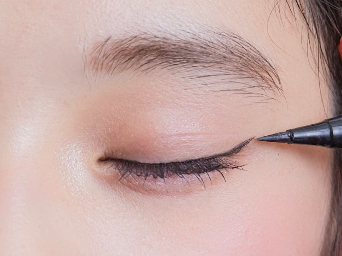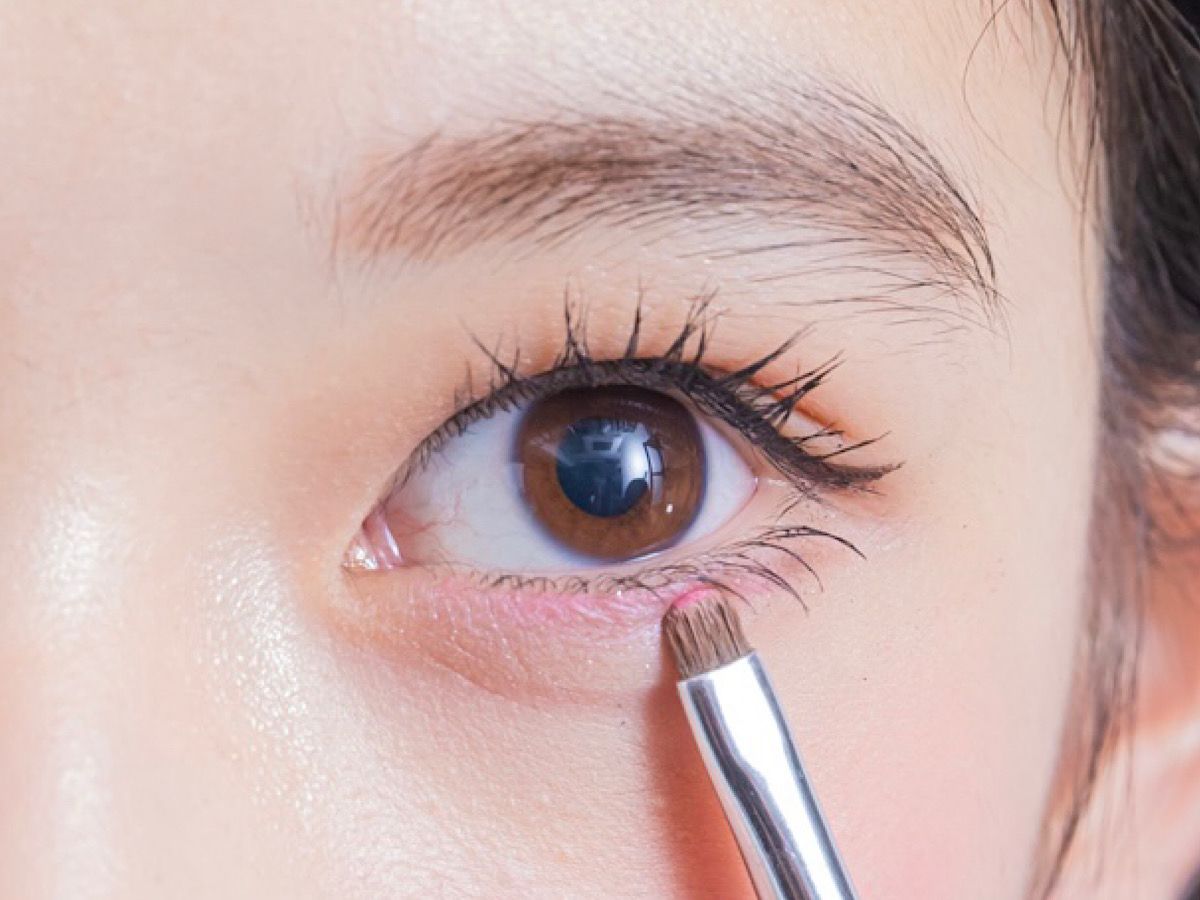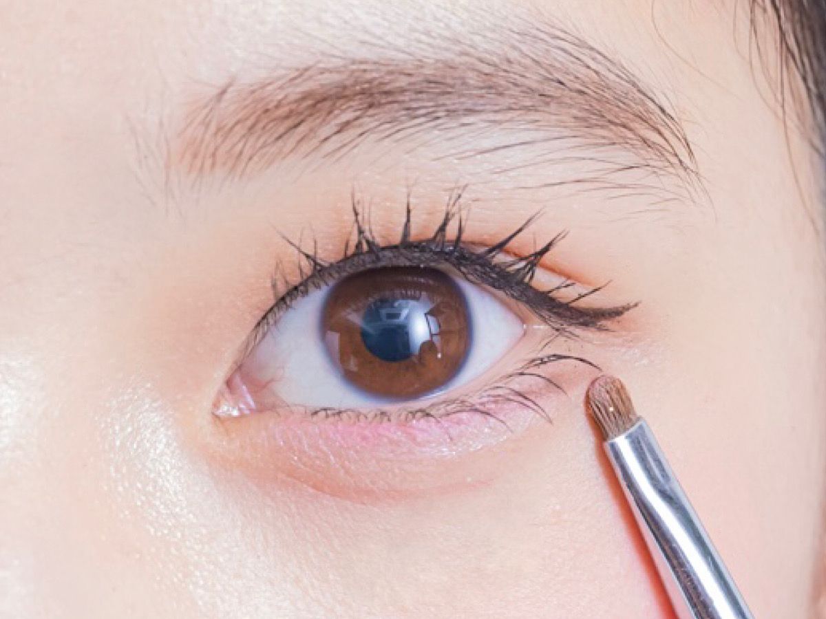 ③黒目の終わりから目尻にかけてブラウンで並行ラインを引いていこう。