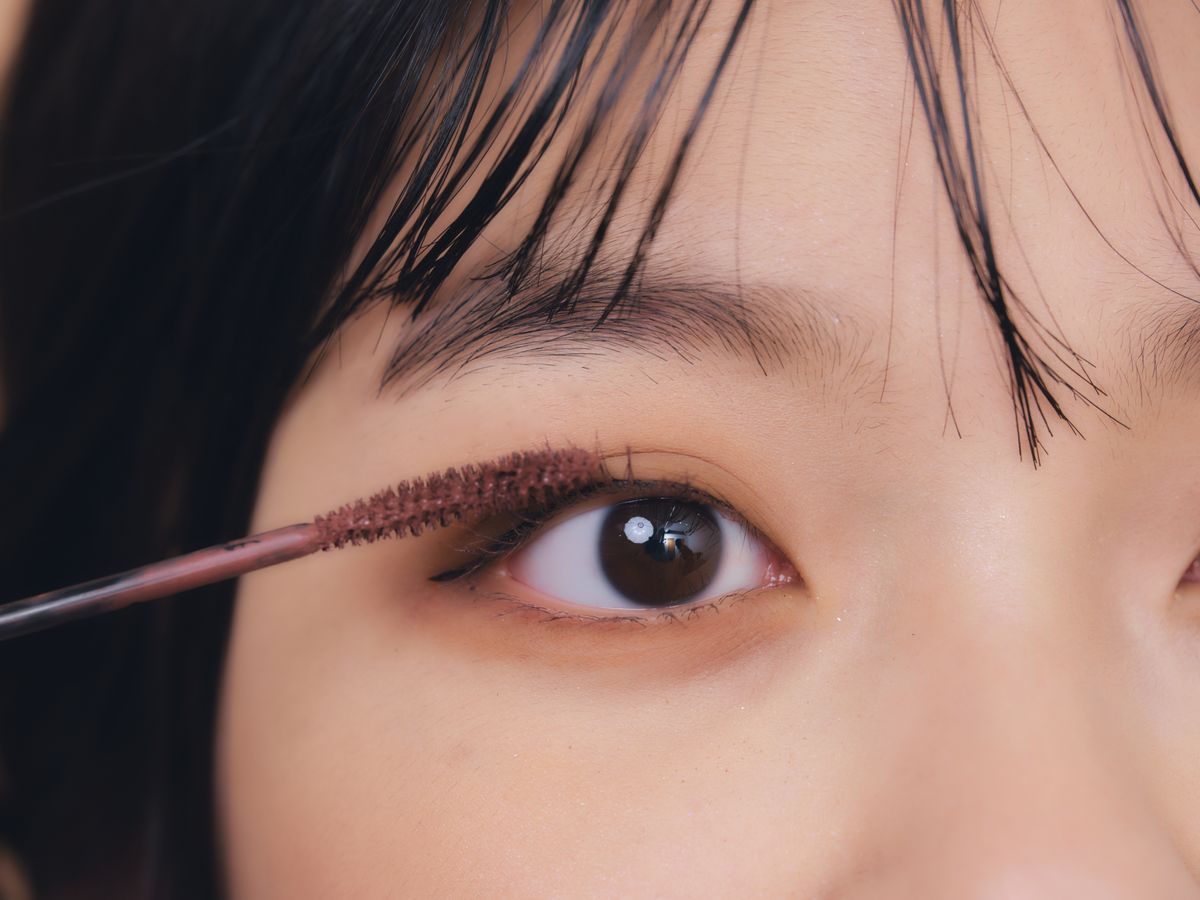 Bの濃いめのブラウンマスカラで、カラーに統一感を持たせるとあかぬけちゃう!
