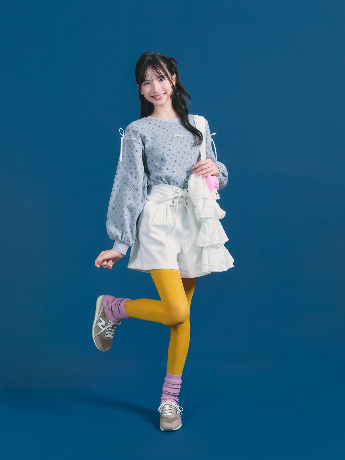ピンクにイエロー、ポップな色どうしの組み合わせも足もとならヨユー☆ お洋服の色はひかえめにしてバランスを取るのがポイントだよ。キアラ☆タイツ¥1210、レッグウォーマー¥1100/ともに靴下屋(タビオ) トップス(参考商品)/ジェニィラブ ショーパン¥4389/ピンクラテ バッグ¥ 3289/SPINNS バッグにつけたリボンチャーム¥1100/バイラビット シューズ¥12980/New Balance