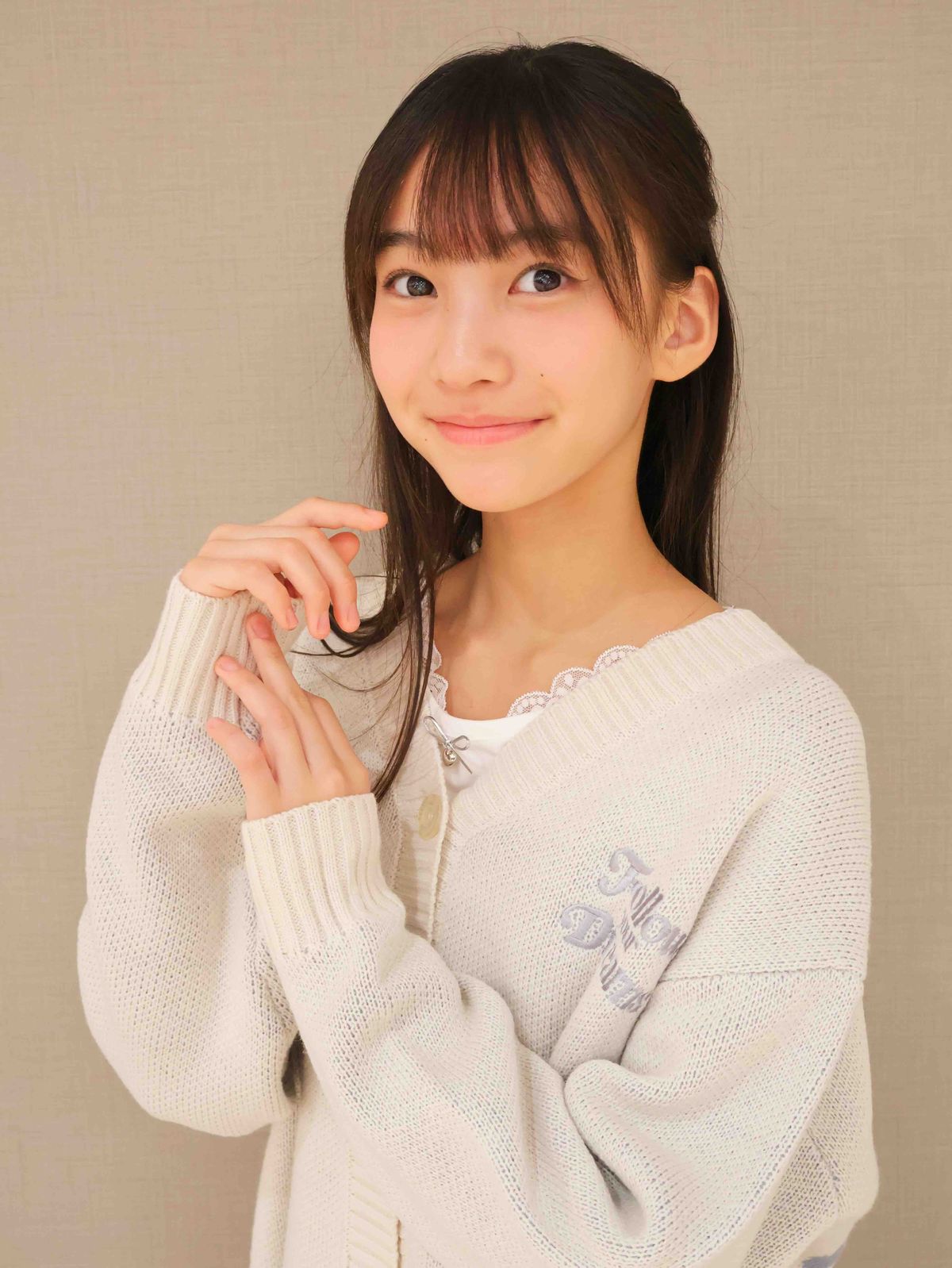 えりの部分にあるリボンのチャームとレースが可愛いTシャツにカーディガンを中に着るのもおすすめだよ!