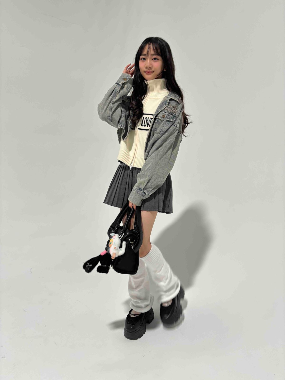 ルーズソックスがポイント!モノトーンカジュアルガール♡【プチ㋲私服スナップ/小沢 ちひな】