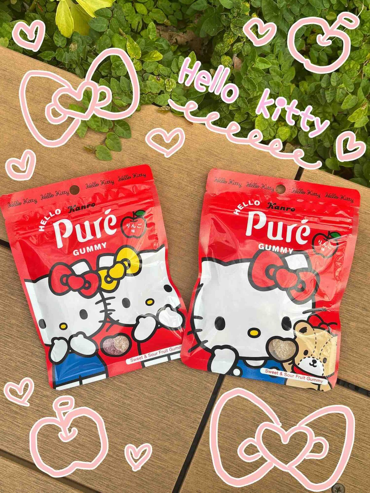 ピュレグミは元々大好きだったんだけど、コラボでキティちゃんのパケのピュレグミが出たの🎀TikTokでおすすめに出てきてすぐ買いに行ったよ!キティちゃんの形やリボンの形があってとっても可愛かった💓
