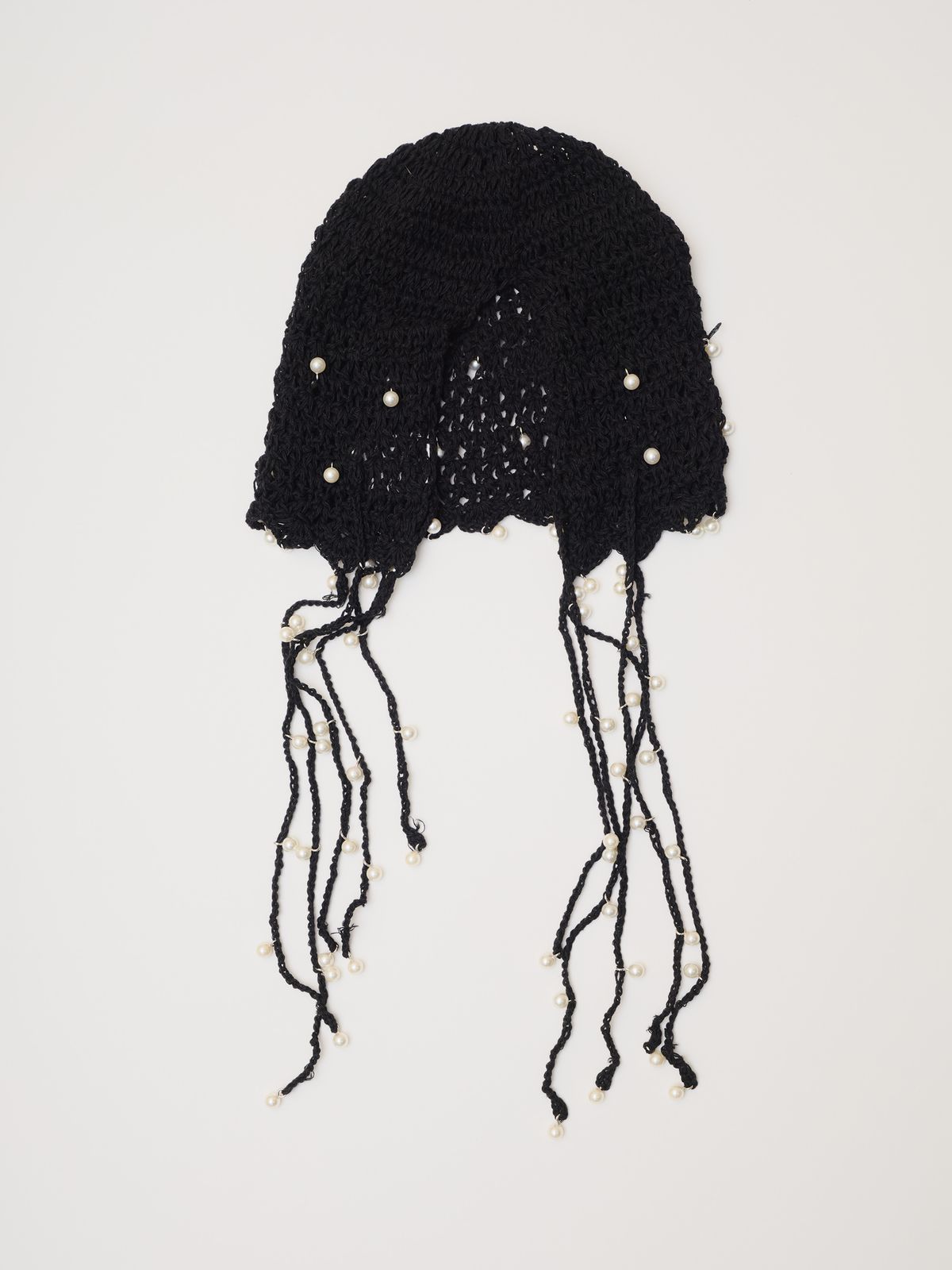使いやすいブラックのバブーシュカは、パールでひとさじのかわいさをプラス♡