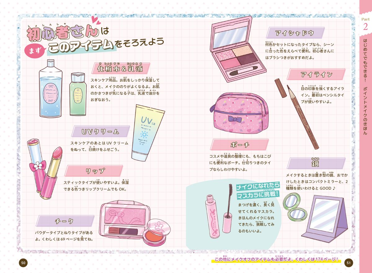 初めてメイクをするってコは、どんなアイテムが必要かなどなど分からないことばかり! そんなみんなの初メイクをお助けする特集がたくさん☆ これを読んで、ファーストコスメをゲットしよう♪