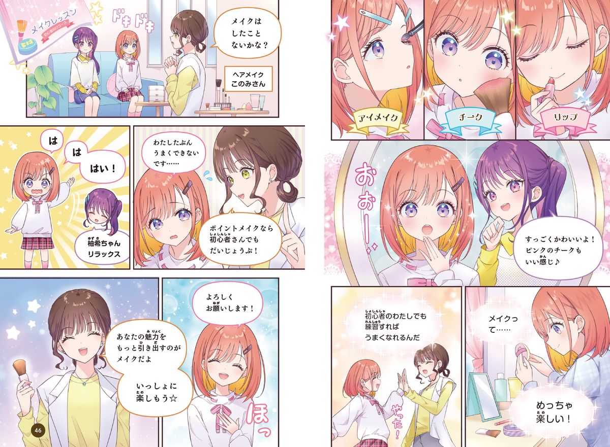 …小学5年生の柚希と甘奈、クラスメイトの岳たちのお話を読んで、メイクをたのしく学ぼう!