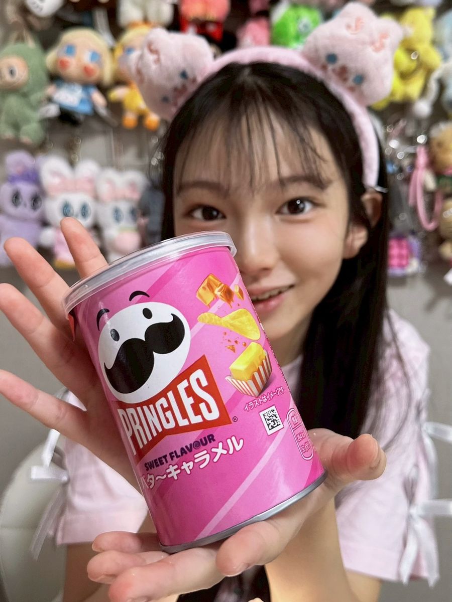 次は !!︎ たまたまコンビニでラスイチ発見した🩷プリングルスのバターキャラメル味🧈💛🩷💛🩷